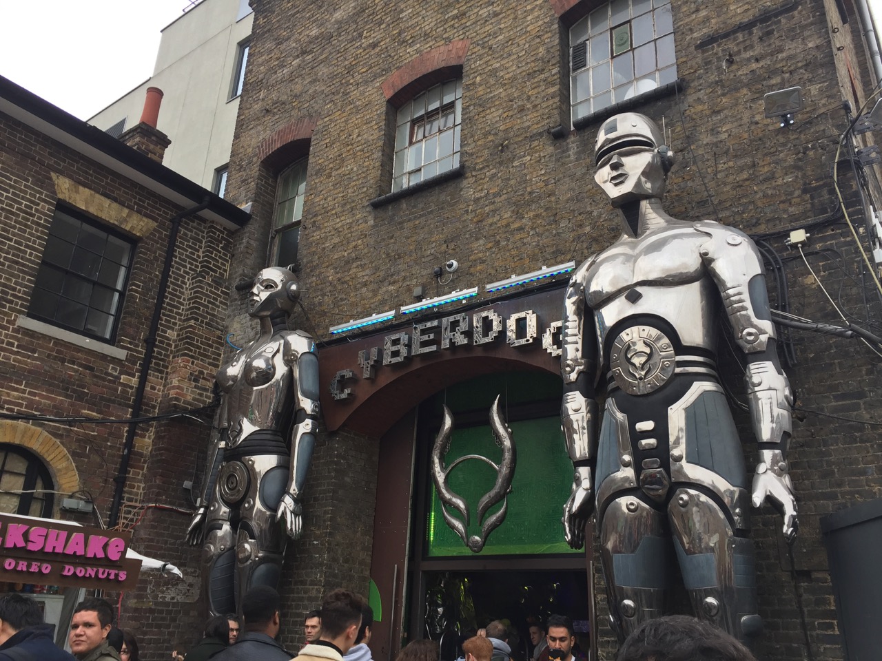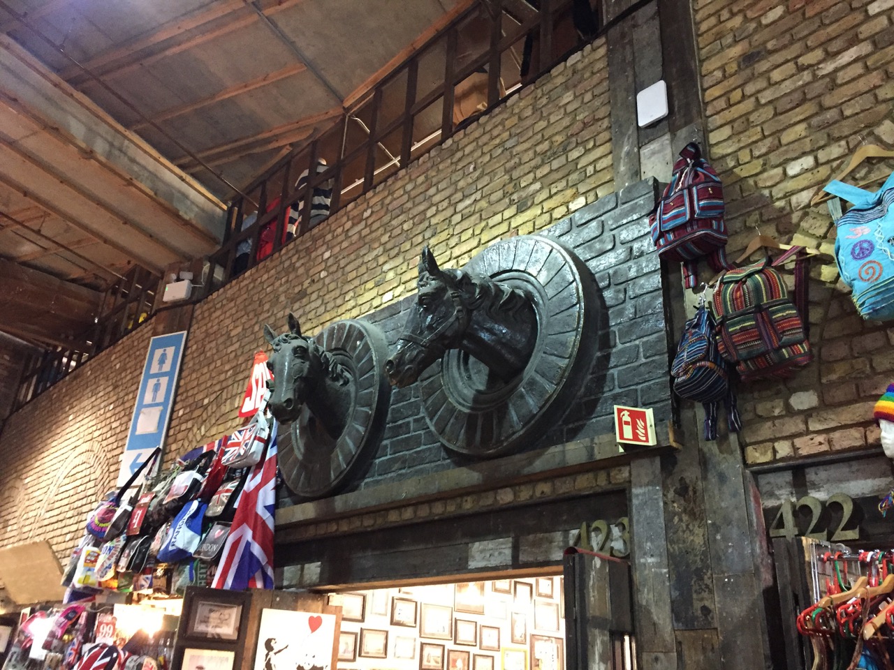After tasty Korean lunch, we went over to Camden Market. Camden was part open-air market, part labyrinthine alternative, artsy market in a warren of old streets and horse stables. It was Harajuku meets goth kids meets stuff tourists like meets food.