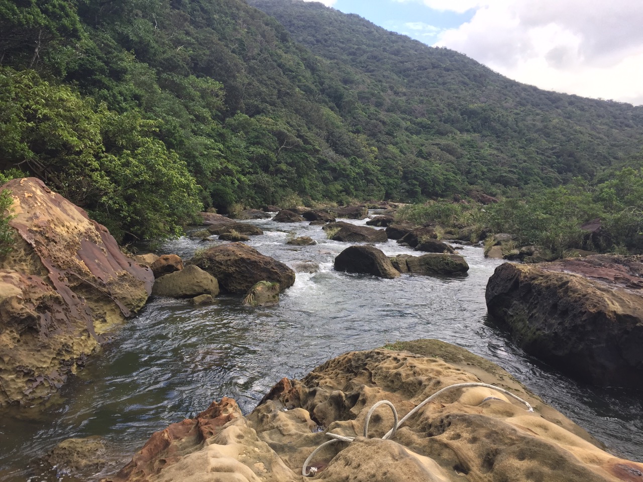 After about forty minutes, we reached the Kanpiree waterfall. It was a wide stretch of rapids, fed into by some slippery streams that we could walk through. I fell on my butt exactly once and basked in sun on the rocks while enjoying the roar of the falls.