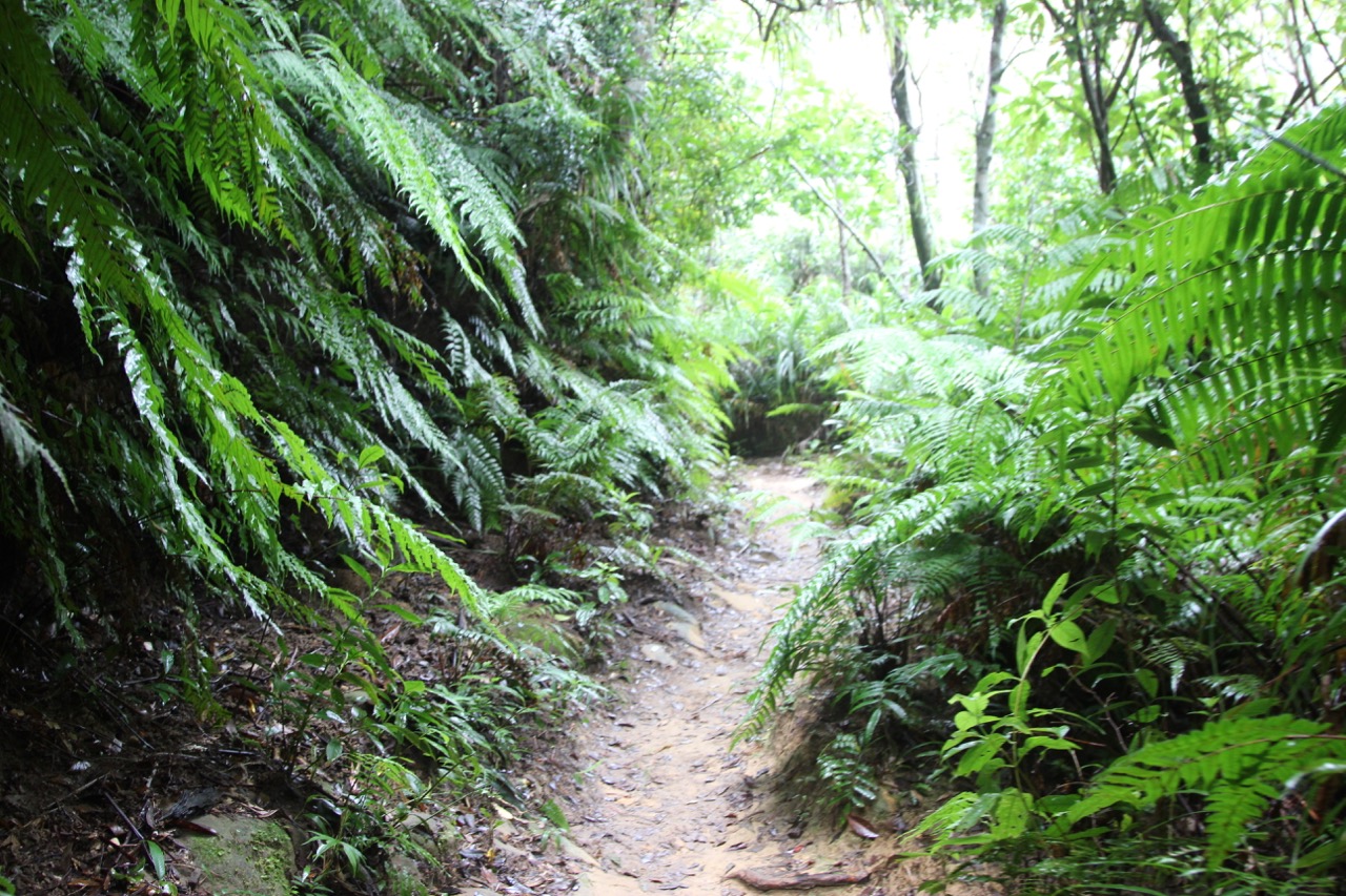 The path was very jurassic park, surrounded by fern trees, ferns, and at one point, a giant fence we assumed was used to hold back the raptors. The trail had many signs proclaiming its protected forest state, as over 75% of the island is protected state land. There were areas where the path narrowed to about six inches wide with a rapid drop off on one side. We lived, and didn’t slip and die.