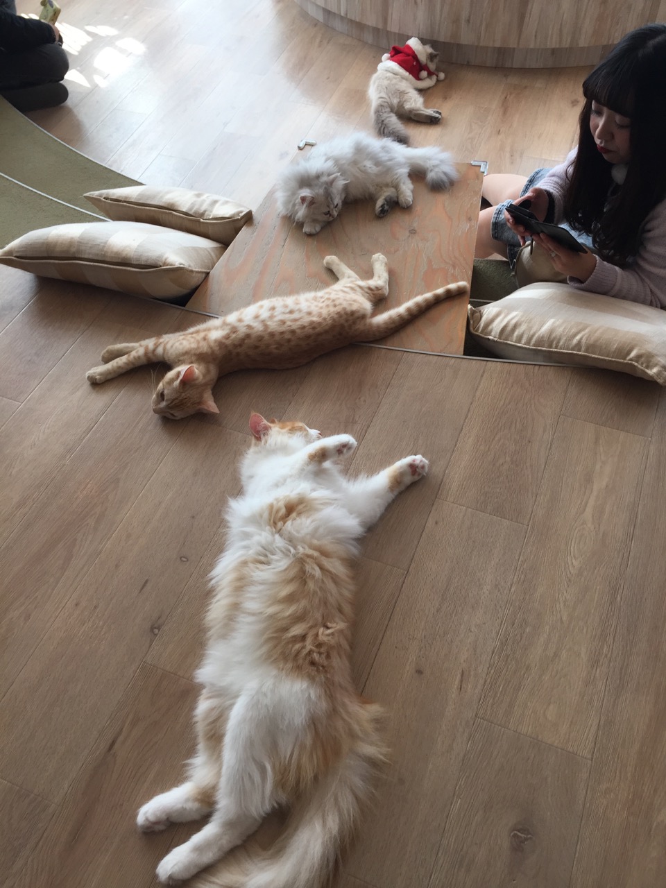 We decided to sync up our post-lunch food comas with sleepy cats in a cat cafe we saw from the street after lunch. Cat Cafes became a thing in Japan after I had left in college, and the only other time we had been was in Korea. Cats abound at the cat cafe, mired in sunbeams and punching boxes over like the tiny little terrors they are.