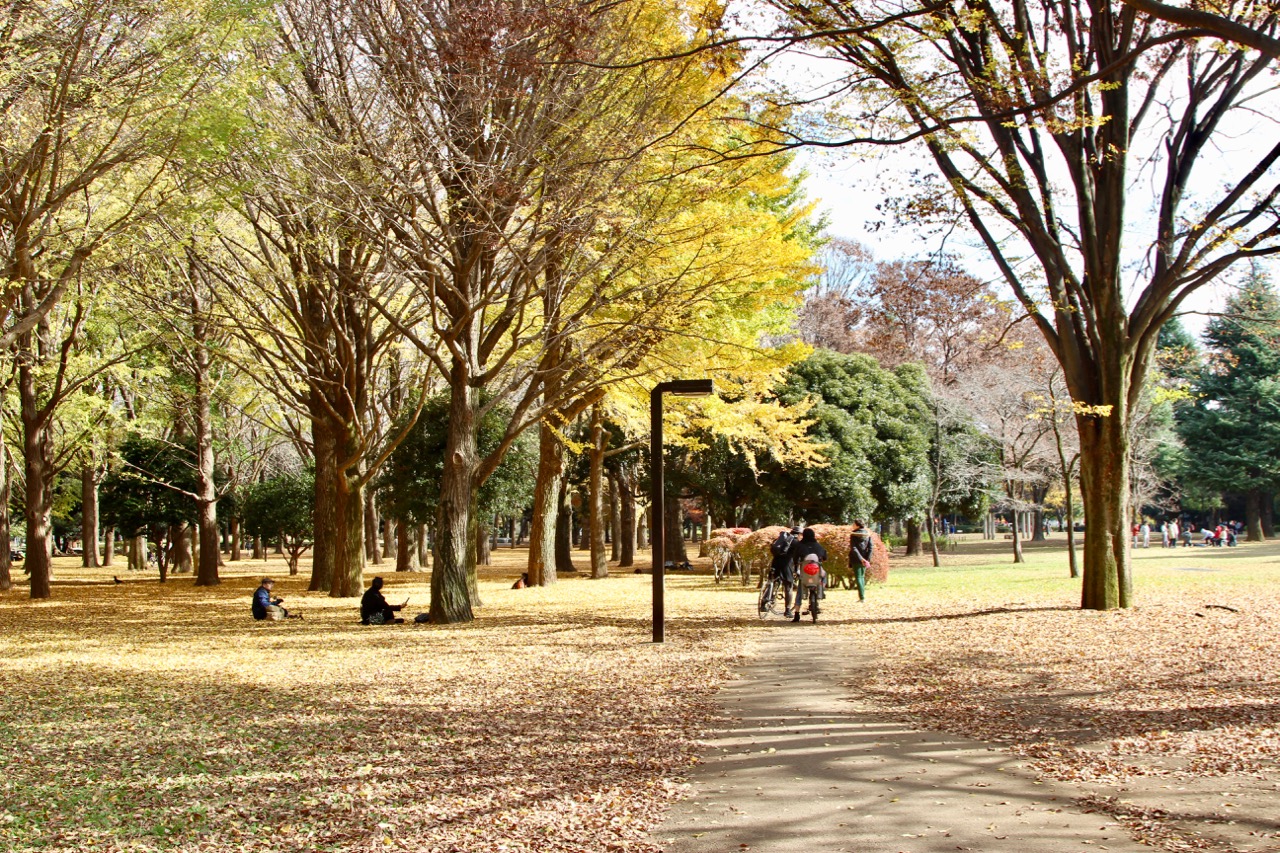 Since we arrived early-ish, Harajuku’s Takeshita street was not yet awake, so we went for a wander around Yoyogi park. The birds had necks here and didn’t look prone to attacking. The leaves were changing and had transformed areas of the park into yellow carpeting. It was empty this early in the morning except for the elderly, clean-up crews, and a few groups of synchronized dancing college students. If it weren’t for the sound of traffic and the occasional skyscraper poking its head above the treeline, you could easily forget you were in a big city.