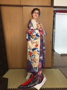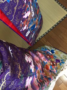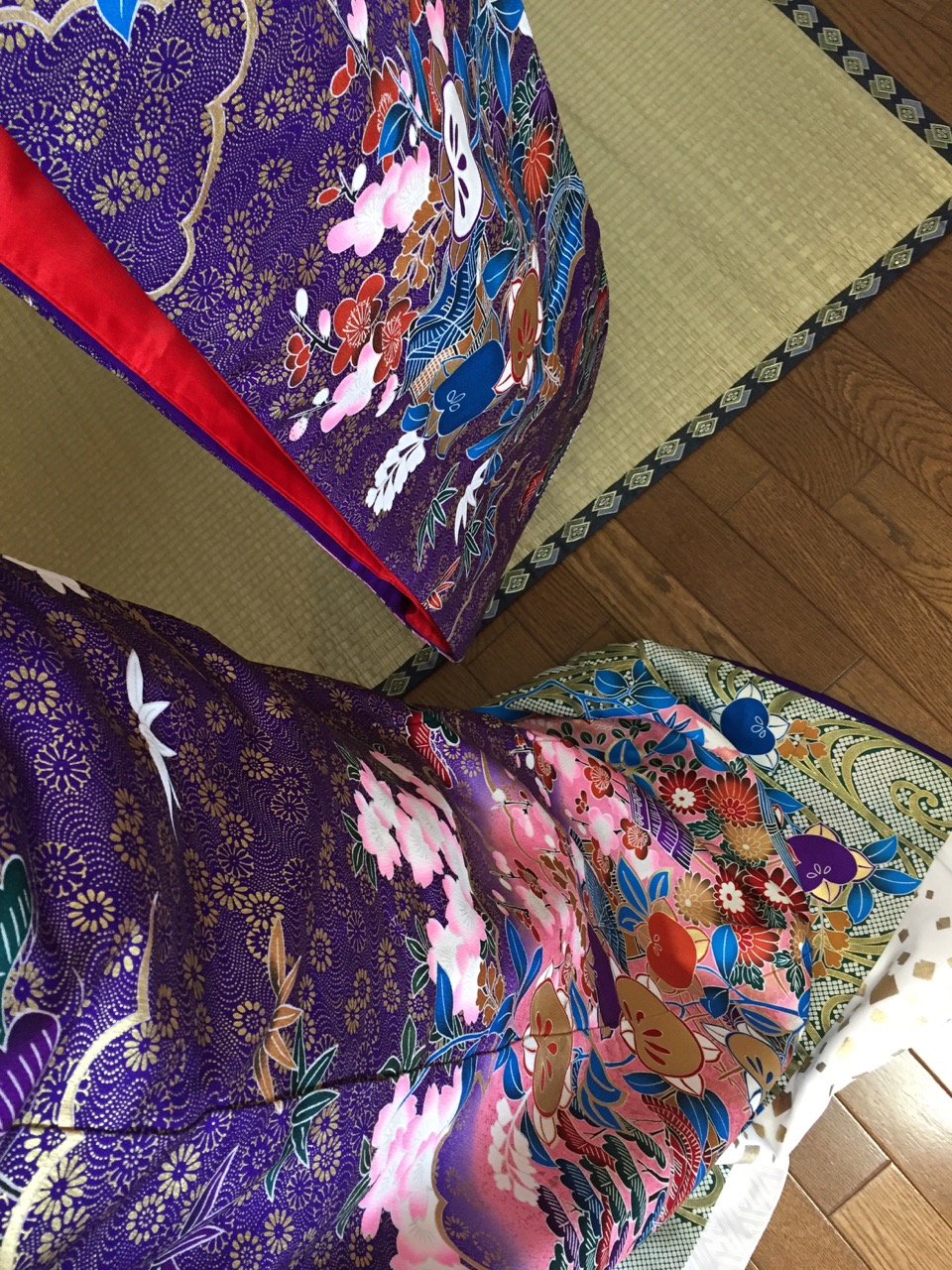 Then, it was time for the expensive layer. A good kimono in Japan can cost up to $100,000, hand-stitched and designed and full of rich silks and fabrics.