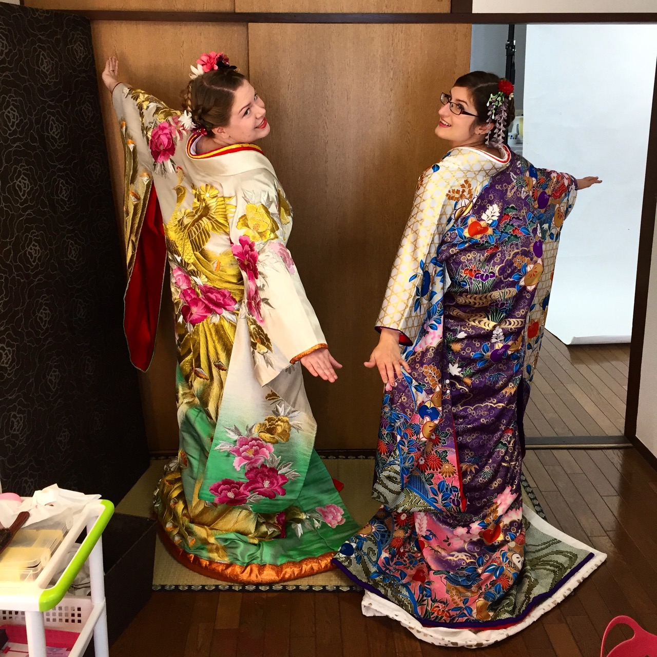Friday, we went to Kimono Studio WA for our 10 AM photoshoot. This studio was a balance of affordable, flexible, and offered the most gorgeous kimono we could find. We were greeted by two energetic and enthusiastic ladies, Hisami and Maho. They have been running the studio for over two years and happily take many foreigners through the kimono wearing process, followed by a photoshoot with props and tips on how to pose.