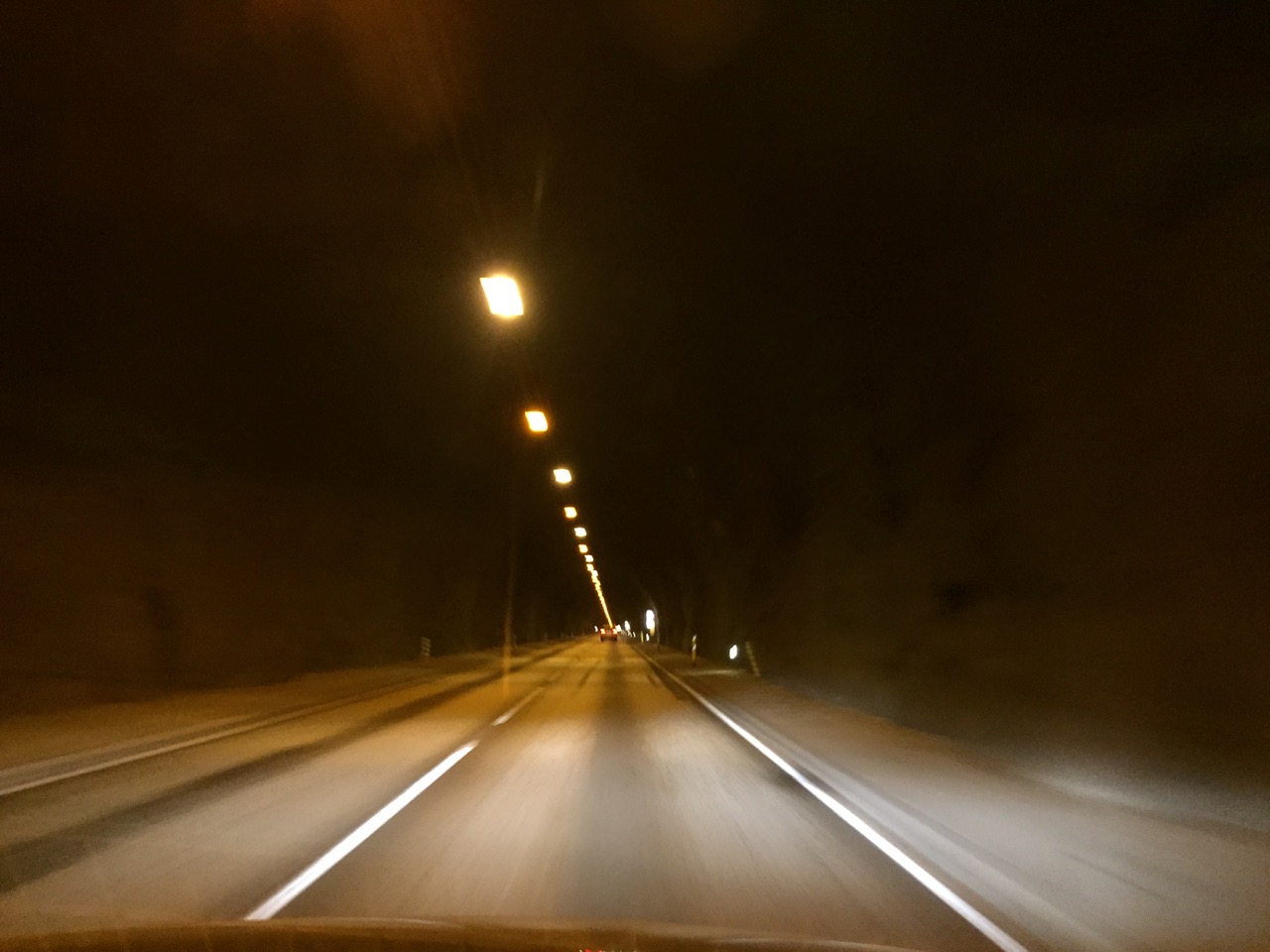 We drove through a tunnel (obviously at warp speed) to save an hour of driving in exchange for 10 bucks. The inside looked like it had been sprayed by some kind of sealant so water didn’t drip down from the body of water above.