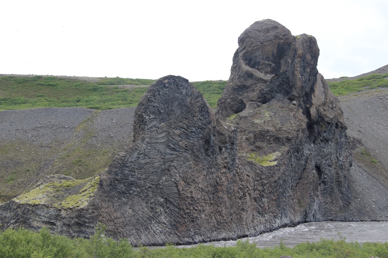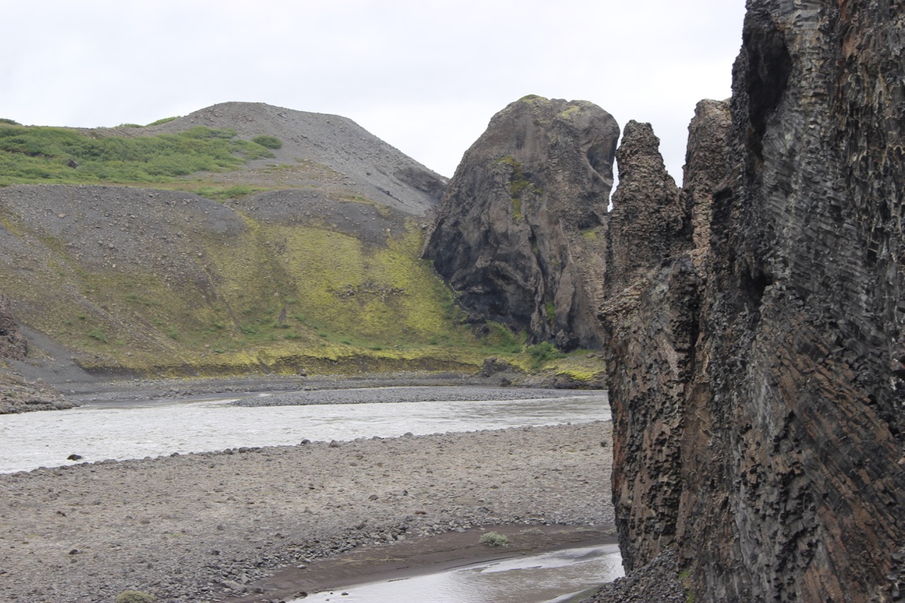 First, Hljóðaklettar. No, I do not know how to say that. I know the funny d is pronounced “th”. The English translates to ‘echo rocks’ and it’s a bunch of weird basalt lava rocks in the Vesturdalur canyon. Getting there was a feat as the paved road quickly (and by quickly, I mean quite suddenly over a hill without any road signs) turned into a gravel road.
