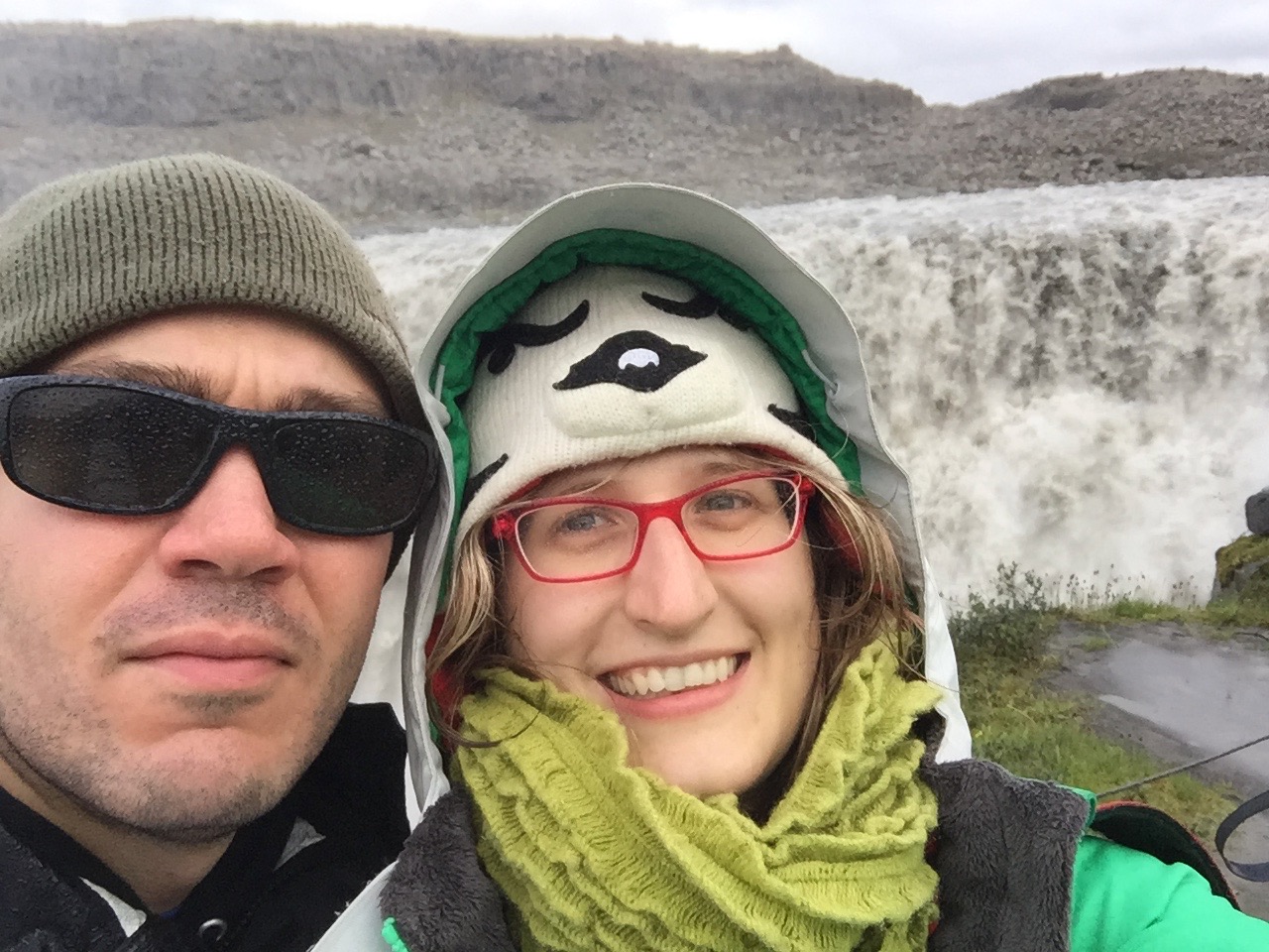 We hiked in a circle for a while, going around, under, and over the weird rocks, until we returned to the parking lot. We decided to skip the Red Rocks about 2km away because we wanted to be able to spend time at Dettifoss.