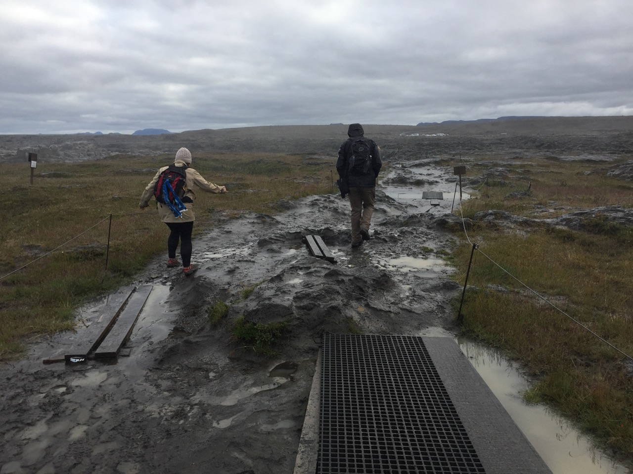 Thanks to the magic of outdoors technology, we were wet but not cold, and mostly dry by the time we returned to Bjuster, which now was splattered with mud. Our trek home took us through the geothermal area of Lake Myvatn. It had lots of steaming water pits and smelled like farts. We will return to explore you tomorrow, Myvatn.