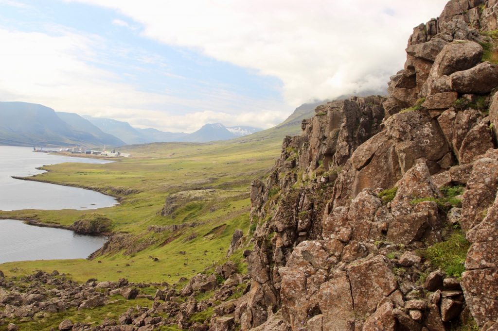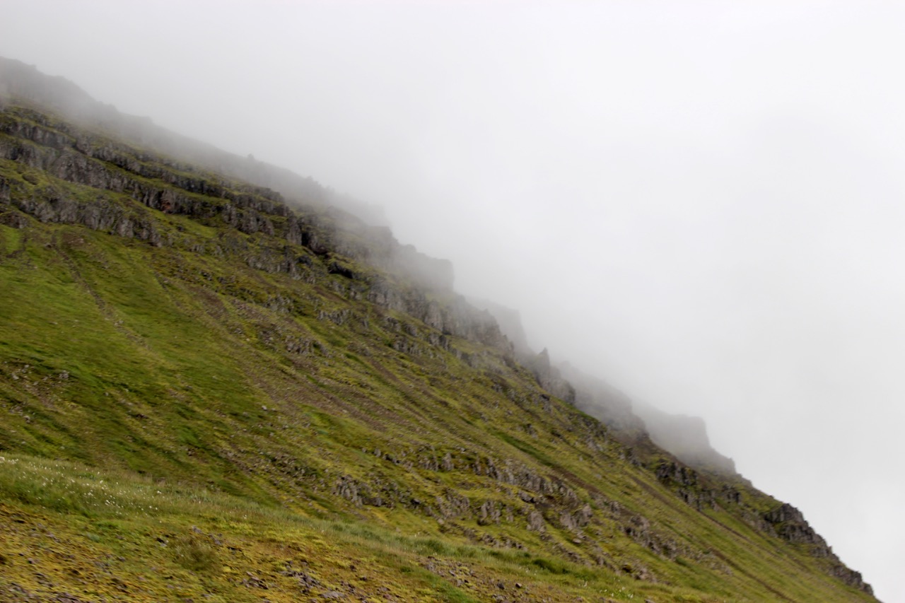 We set out to explore a few of the neighboring fjords. We backtracked to the previous town (through the tunnel again!) and visited a now-retired spar mine called Helgustaðanáma. Spar. I didn’t know what spar was – all I could think of was the material Feldspar from a game I had recently played. It made pretty crappy armor.