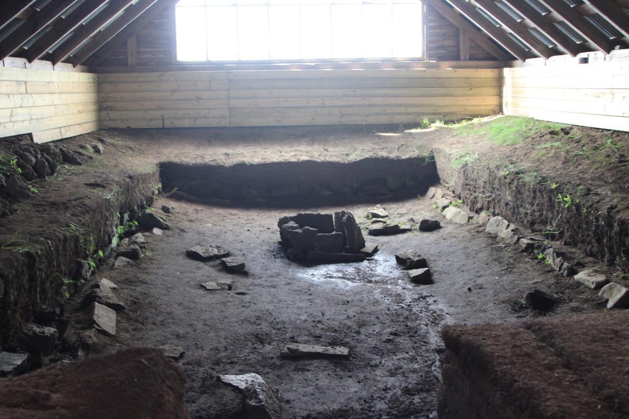 On the way back, we went to Stong, ruins of an ancient Viking farm. Stong was buried by an eruption of Mt Hekla in 1104, and was unearthed in the 1930s, in the first official archeological dig in Iceland. Only the foundation remains of the ancient farmhouse. It is now protected by a shelter and you can walk around the foundation. Neat!