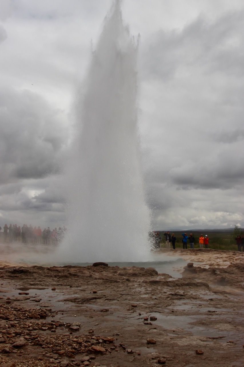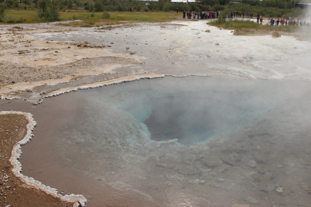 Instead, the nearby Strokkur was going off with regularity – so we got to see that go off twice. It sprayed nearby people who were too close. It was a lot of people who didn’t notice where the ground was wet where they stood downwind of it…they ran shrieking as the water rained down.