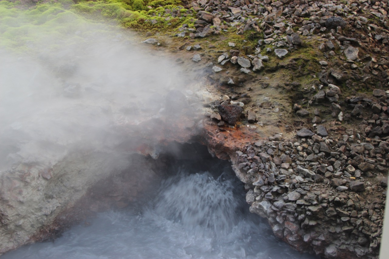 We passed boiling water pits which steamed over the path if the wind blew just right (or just wrong). Most of the hillsides were steaming in some way. None of this was alarming – like hillsides just naturally steam here…and bubbled and boiled and were stinky. The river we were alongside was steaming hot and schoolchildren would cook eggs in it (would you like some extra egg smell with your egg?). If this happened in Minnesota, I’d be concerned that the end was nigh. Not here!