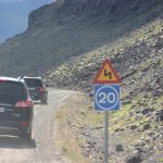 Our roads took us up over a mountain. The top was just rocky wasteland with some of Iceland’s 600 types of mosses growing on it. We were pretty close to patches of snow. The mountain passes were steep switchbacks of gravel – but at least the turns were quite wide. These roads are only open in the summer. There is no way anyone could clear snow off of them in the winter without dying.