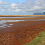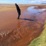 It was early, so we set out to explore the nearby red sand beach, famous for…red sand! The southern coast was very different from any other area of Iceland we’d seen, with sandy beaches stretching between fjords. We bumbled down a gravel road until we reached the beach, which was over a mountain pass offering stunning views (and at least it had a guardrail).
