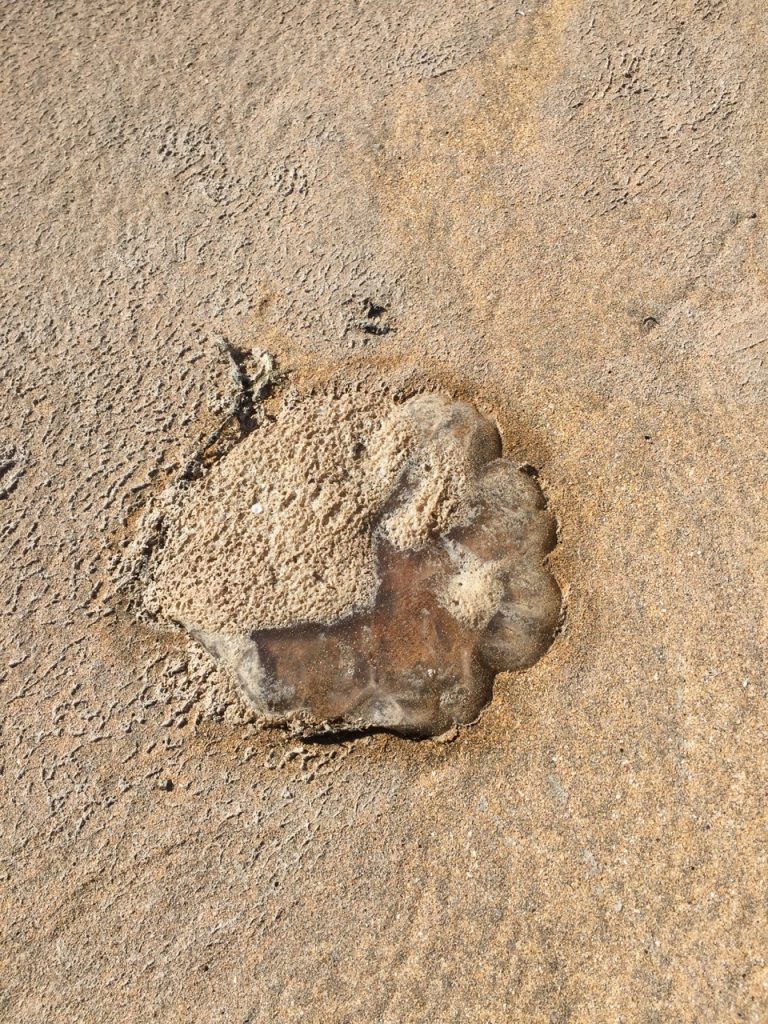 We wandered around the beach and we found a jellyfish, which we poked with a shoe to certify its jellyfish status.