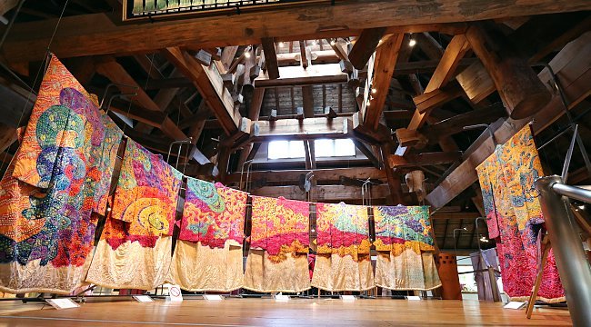 Sadly, photography was not allowed inside. Photos wouldn’t even do the fabric justice – the dyeing technique gives them very vivid colors. Some sparkled, and all had extremely fine stitching and vivid colors. He built the museum in the early 90s and his kimono are on display there permanently. Sadly, he never finished his magnum opus of 80 assembled kimono.