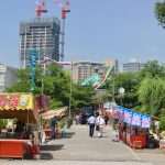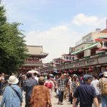 From Ueno, I went to Asakusa for food and Sensoji shrine. Asakusa is always crowded with people – there are many covered streets with Japanese souvenir shops – artsy and traditional alike. The street food is tasty and numerous. Really, most people come to see the big shrine and go shopping. Despite the oppressive heat, it was packed.