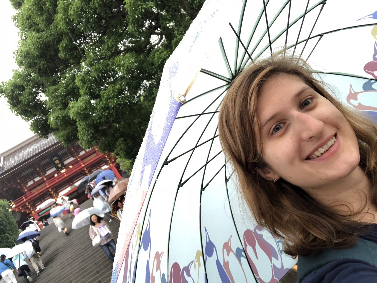 I have places to go and temples to see in Kamakura, and so after a leisurely morning, I set out with my new penguin umbrella and my sunglasses, not pausing to think about what a foolish combo that is to carry on this day…