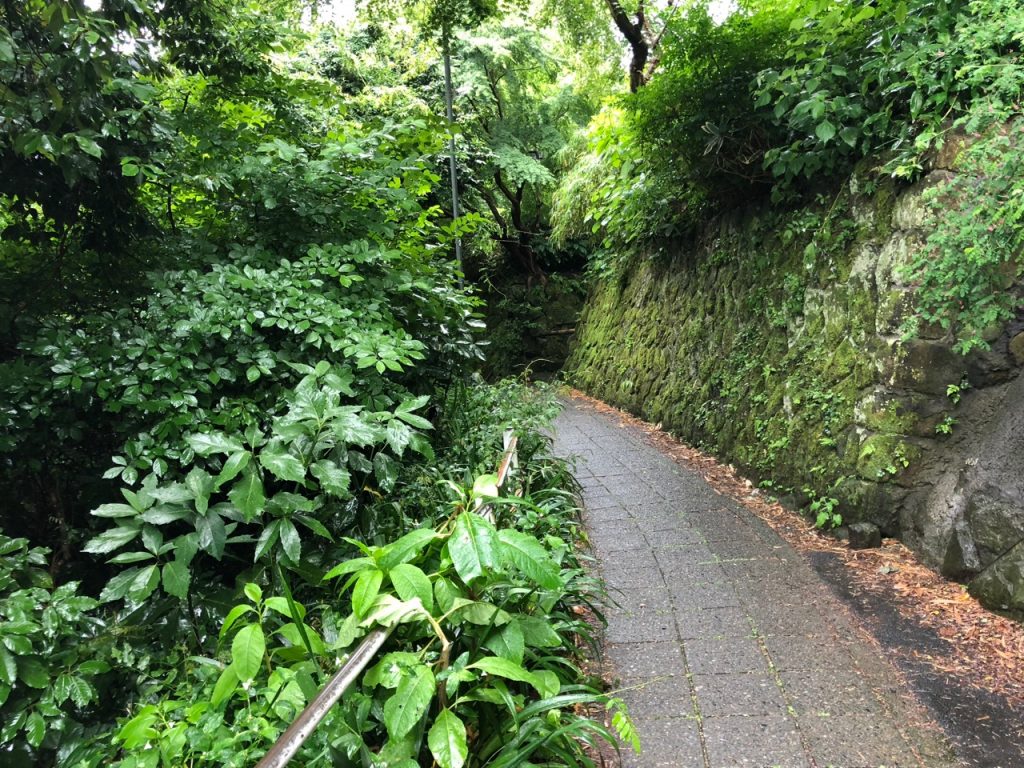 Google took me most of the way there on a narrow and busy street, where my umbrella repeatedly bonked off of high concrete walls or poles that were randomly there. It then took me on a narrow walking path, which in any other country might have been home to a serial killer, but because this is Japan, it was relatively pleasant and Ghibli-like (and sheltered me from the rain, more importantly).