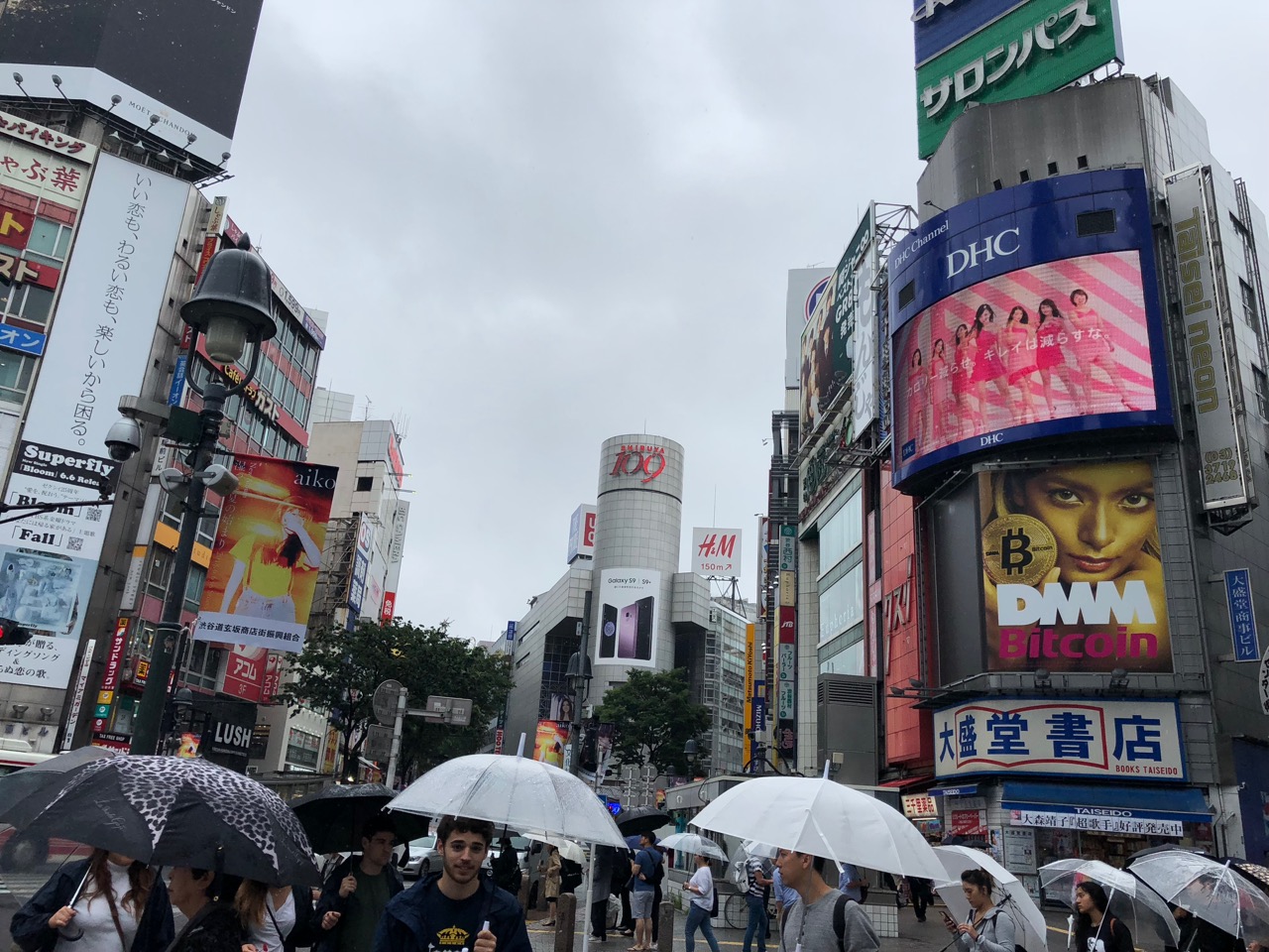 I wandered the very wet streets for a bit and when the downpour became too much, I settled in to watching people cross in Hachiko crossing from the Tsutaya Starbucks.