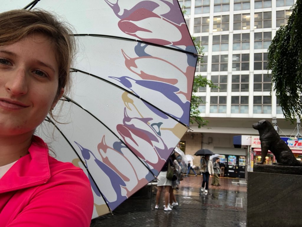 There was a very long line despite the rain to take a picture with the Hachiko dog statue – which is a statue placed to commemorate a very loyal dog who returned to the station to wait for his master every day for nine years while his master never returned. If you would like to shed a tear, he has a wikipedia article.