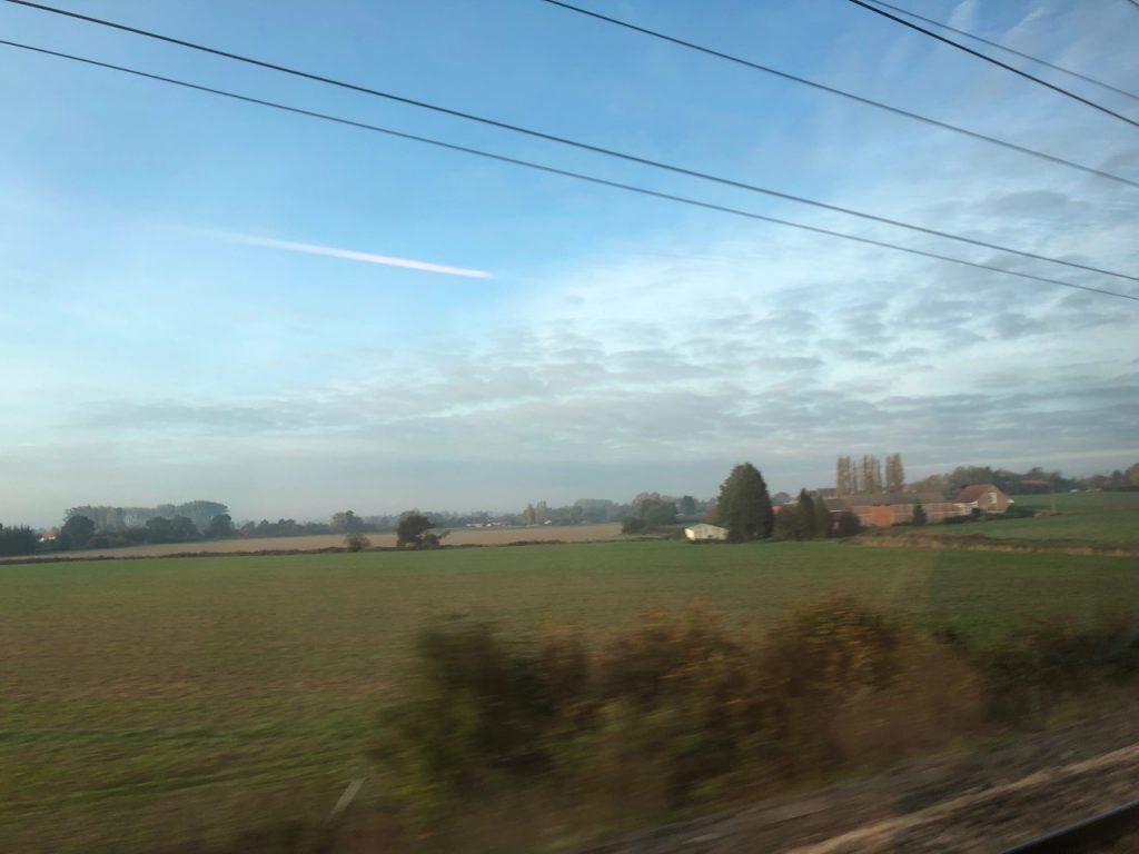 My train seat advertised itself on the window as being a seat with a view, but the windows were pretty dirty so it was hard to get any decent pictures. France just looks like Wisconsin with different cows, so picture that but with some tall trees between fields and you’ve got northern France.