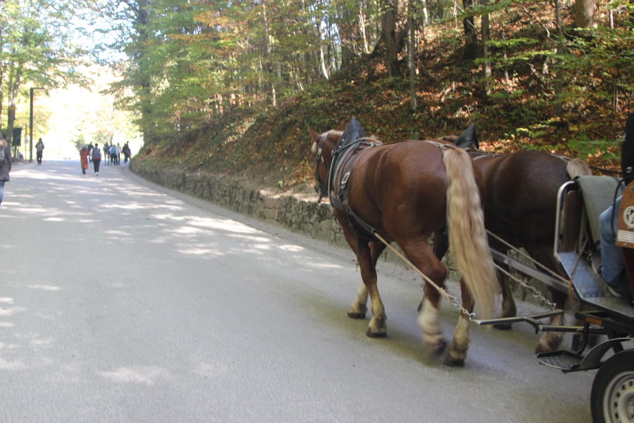 After he died, the state of Bavaria started letting people in to see his castles for a nominal fee to pay back the insurmountable debt he had run up. If you want to go inside today, you need to plan a bit as the tourist hordes descend upon the castle on the daily. We were happy just walking up the hill on the outside. I mean, as happy as one can be hiking up switchbacks for like 20 minutes. In an extremely German fashion, small children hiked up behind us, singing songs loudly. The cold mountain air started feeling good instead of freezing. Horses and the elderly passed us.