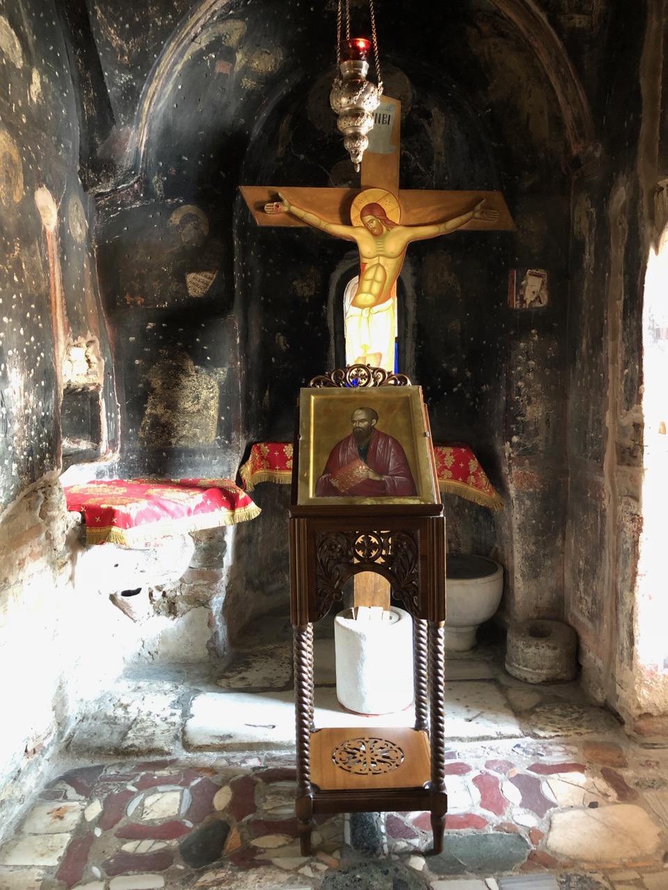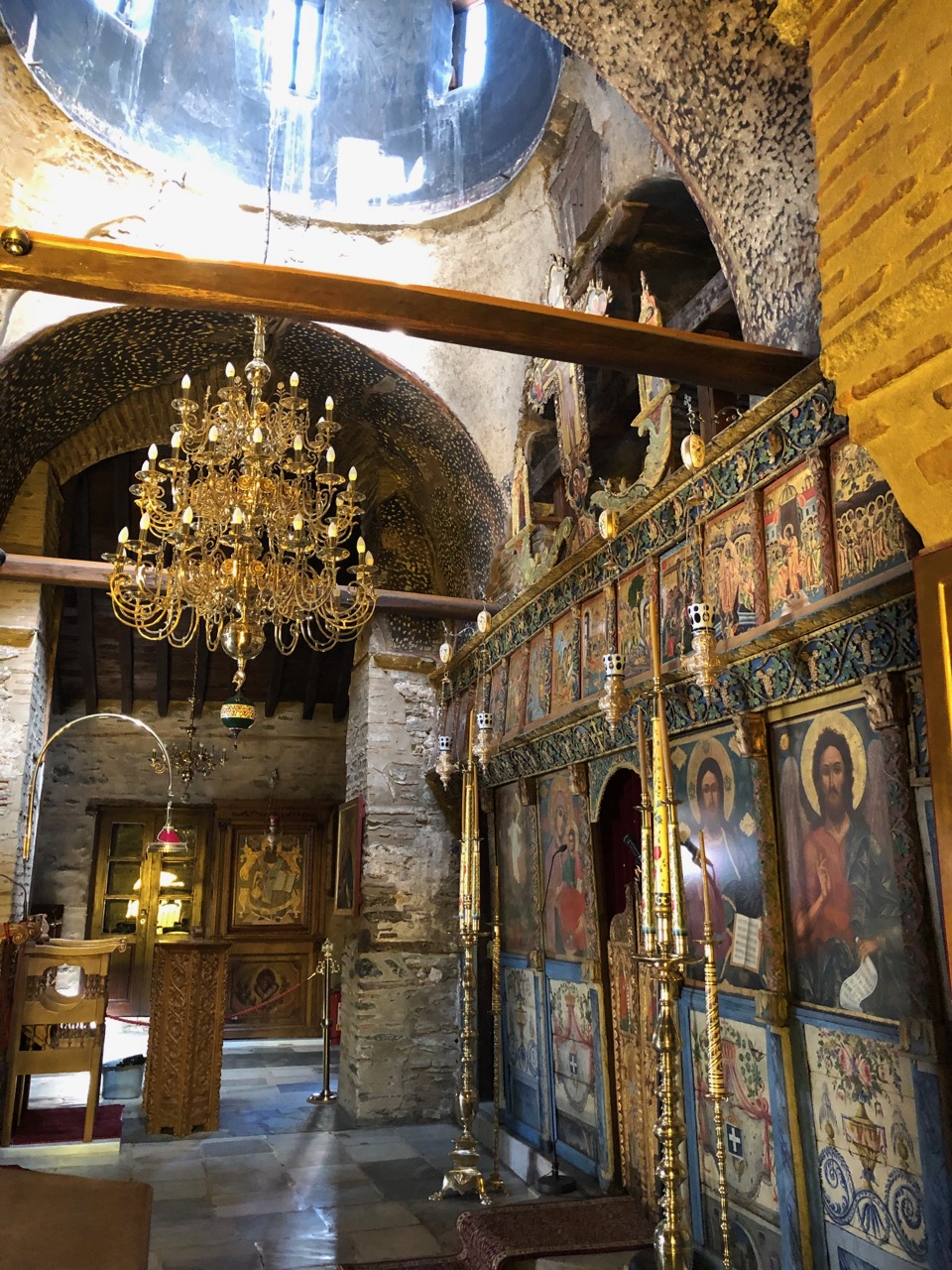 We stopped at a monastery at the top (supposedly one where Paul stopped in 51 A.D. if you’re into that) and rested while admiring the views. The monastery kept chickens and peacocks and had a wealth of hidden frescoes inside of incensed and unassuming buildings.
