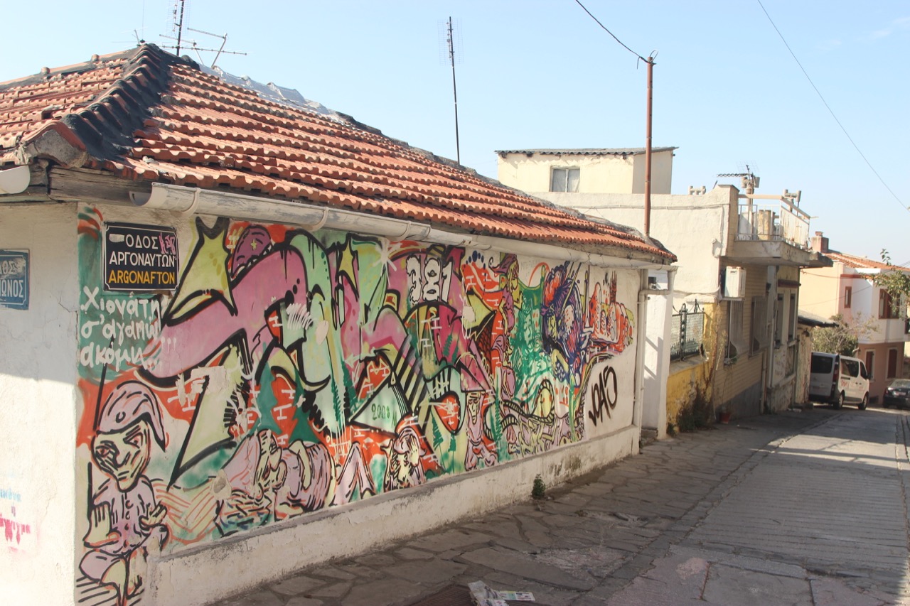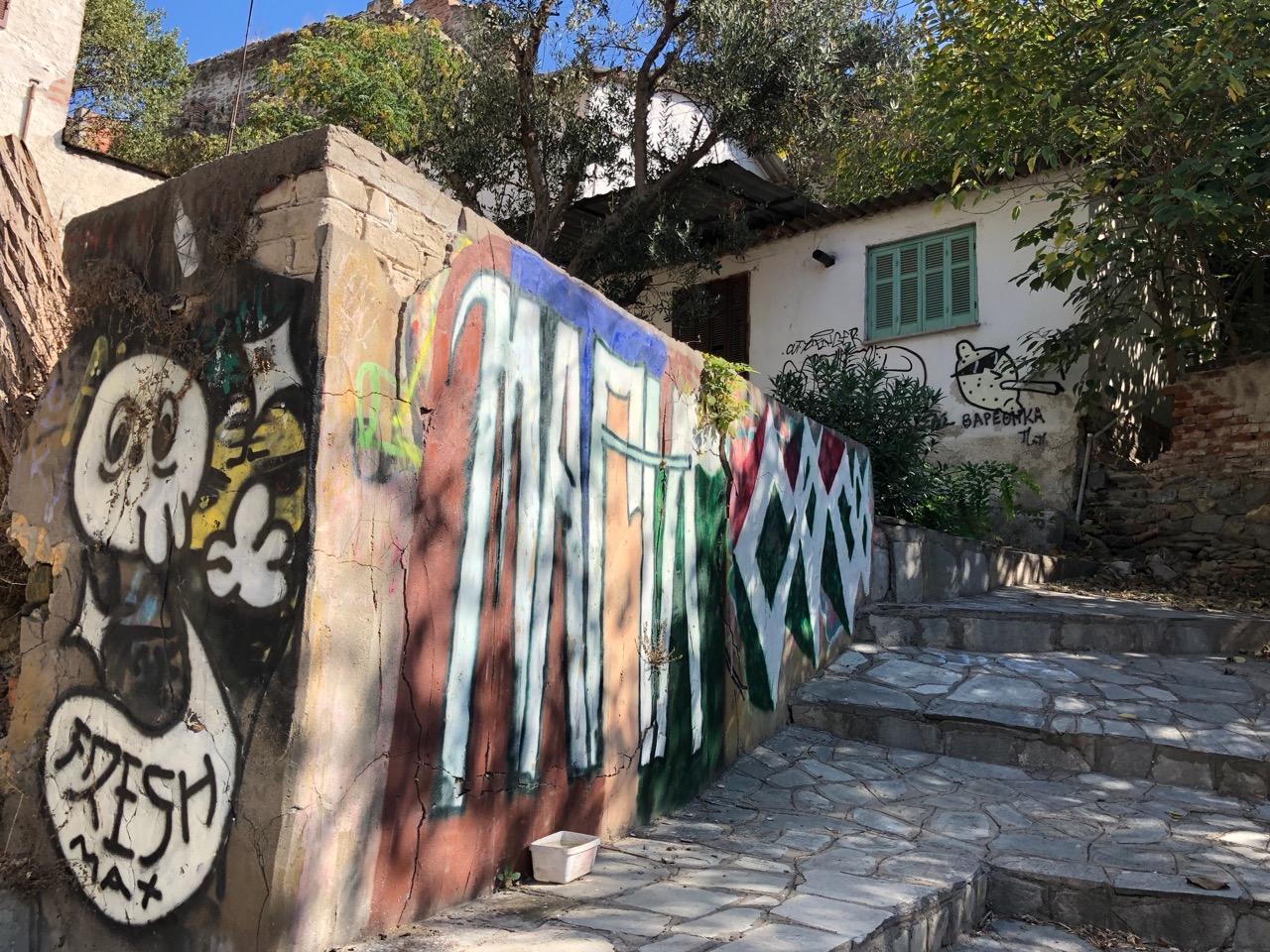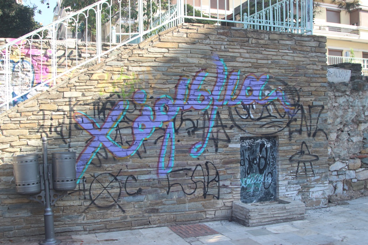 Today we did a self-guided walking tour around Thessaloniki to see some of the ancient sights left around the modern city, which involved getting out of the city center for a bit and seeing the old town and the Byzantine walls. We also did done see a lot of kitties (including giving out some pets!) and graffiti. Thessaloniki has some impressive street art, outside of usual crummy graffiti scribbles.