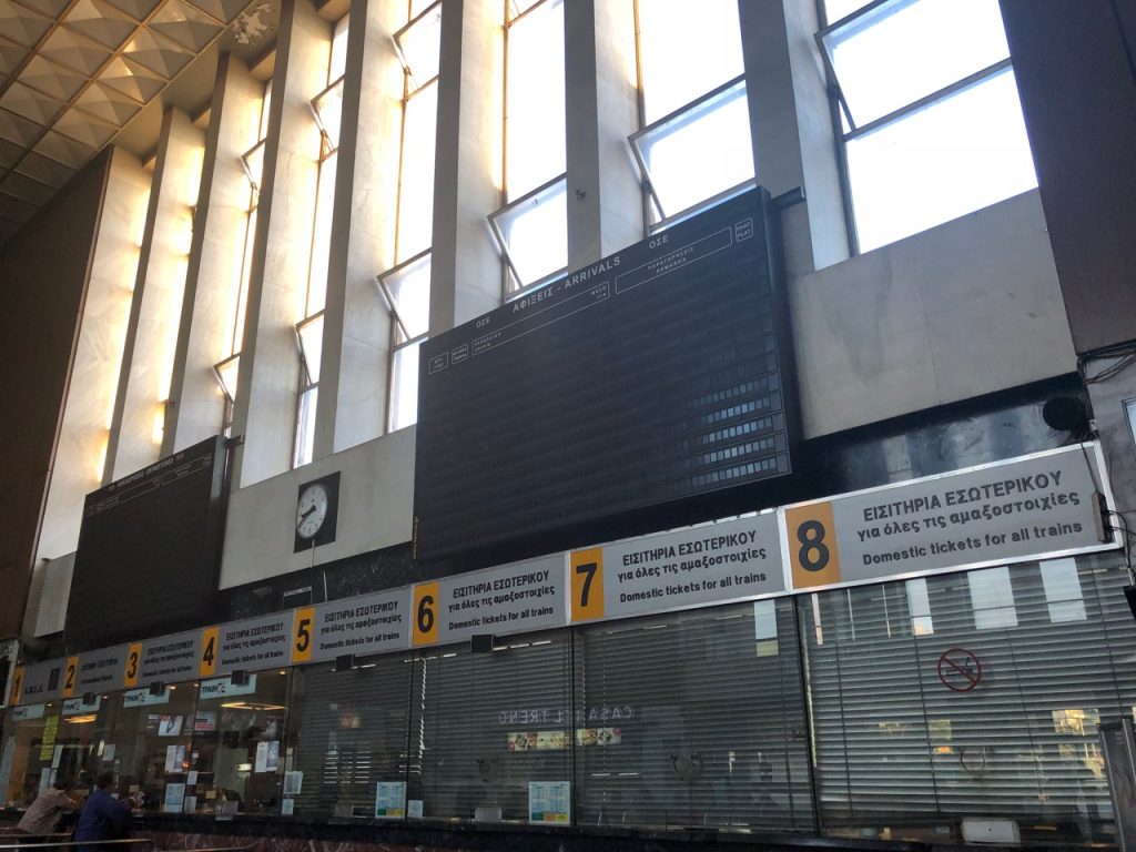 Now picture yourself in a Greek train station (go on, imagine the gyros and coffee and a bunch of nuts). Now imagine a big signboard that tells you when trains are arriving and departing. IT IS BLANK. Unused. The station also has no signs on the platforms. WHY??? Why are these boards decorative when they could serve an orienting purpose?! That is literally what they are there to do!