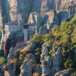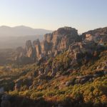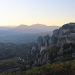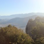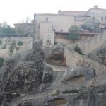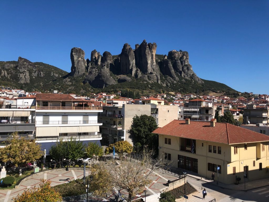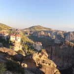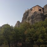 Kalambaka seems deceptively small from the station, but it’s a small town of about 12,000 people who live in charming-ish houses nestled in the foothills of the weird sandstone rocks upon which the monasteries reside. We are staying near the train station, and head for our ABB and some food before our evening monastery tour. Our ABB has an amazing view!