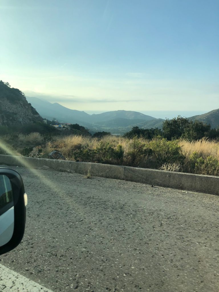 Thursday was our excursion to the Palace of Knossos, left by the Minoan civilization between 2,000 and 1,000 BC. It’s roughly a 2 hour drive east of us, near Heraklion. The road followed the coast and wound up and down mountains. I was extremely glad we chose to not drive in Heraklion because it was somehow worse than Chania.