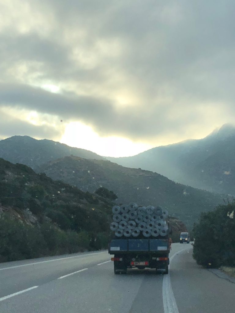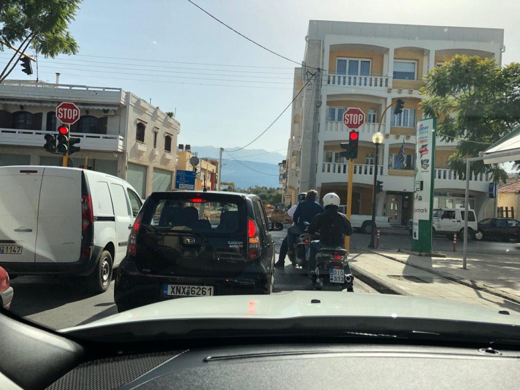 In Greece, you make sure to drive all the way to the right-hand side of the road, to leave way for people to pass in the middle one or two “lanes”. Thus, your humble two-lane road really truly becomes a four-lane death causeway in the right circumstances. We hugged the right-hand side when possible (sometimes it was not road, but was bushes, so you had to dodge the bushes) and passed cautiously. We lived with as little screaming as possible. I still maintain that Costa Rica is worse since people tend to drive everywhere and usually right in your face.