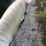 Hoofy at one point saw a bag that scared the heck out of her and she bolted away from it. Rocky saw that suspicious bag and gave it a wide berth while eyeing it warily. I was glad he didn’t bolt. My legs were tired at this point and I didn’t want to fall off a horse. About 5 feet from the end, Faroura decided she had to pee a lot and all the other horses ignored the stop and went on ahead. They were eager to get home and remove their saddles.