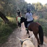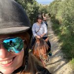 Since these were beginner lessons, our guide took us on an extended walk. I want to know what the f we did in Iceland because we did like 10 different gaits and we all nearly died in their “beginner” lessons. Maybe it was an attempt to weed out foreigners who ride ponies by killing them with tolting. We meandered along in a line, through olive groves, up hills, past a lake, and many dogs. We heard a lot of sheep and saw a few in a pasture. The sun was setting, the olive trees smelled amazing, and there were a lot of birds chirping everywhere.
