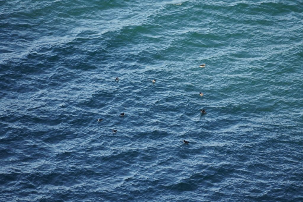 They were floating in the waters below the cliffs.