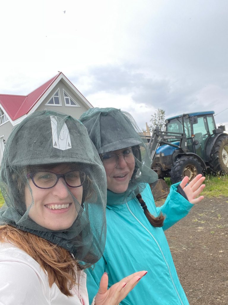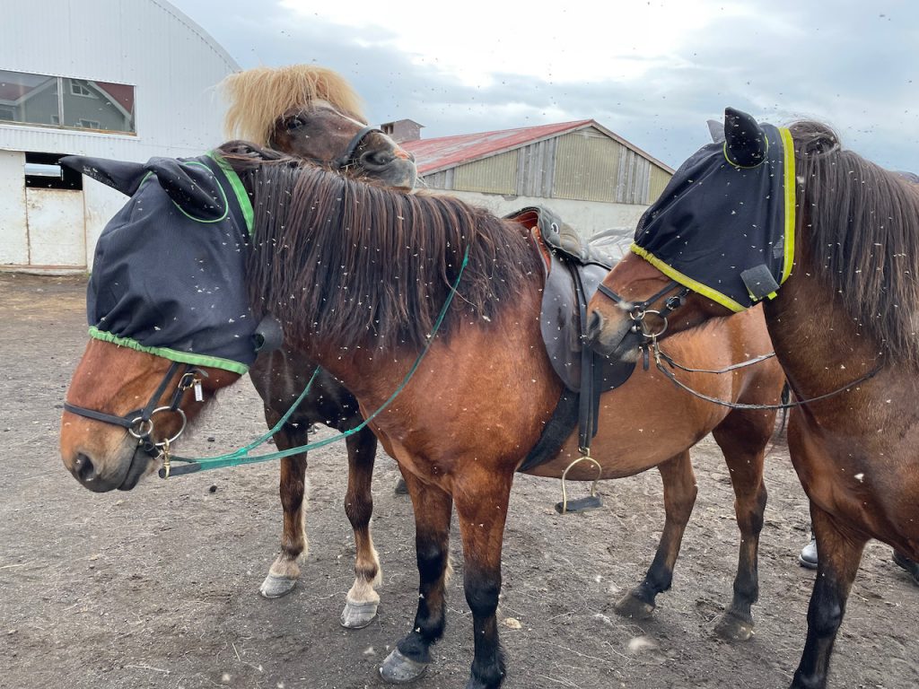 Upon arrival at our stable, they handed out riding helmets and fly-net hats. It’s hatching time for midges and small biting black flies and I guess we just barely missed this timeframe last time we were here, because I don’t remember the lake being a pit of flies. (BUT IT’S IN THE NAME IF YOU SPEAK ICELANDIC)