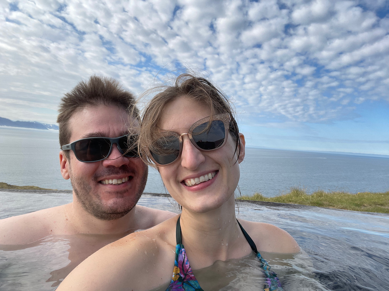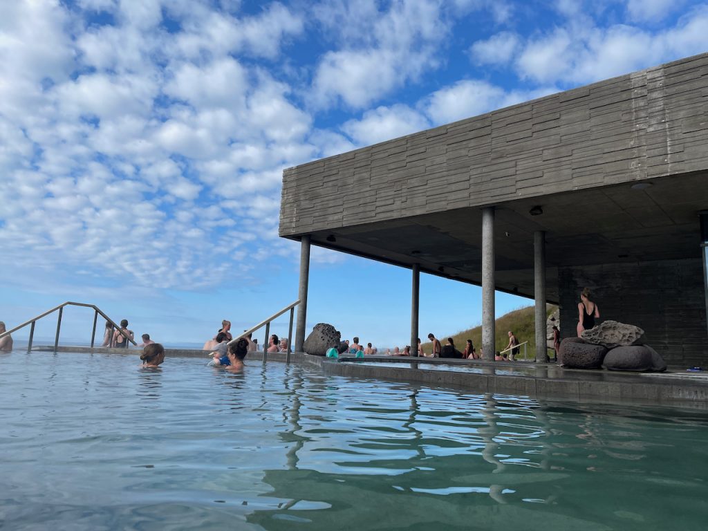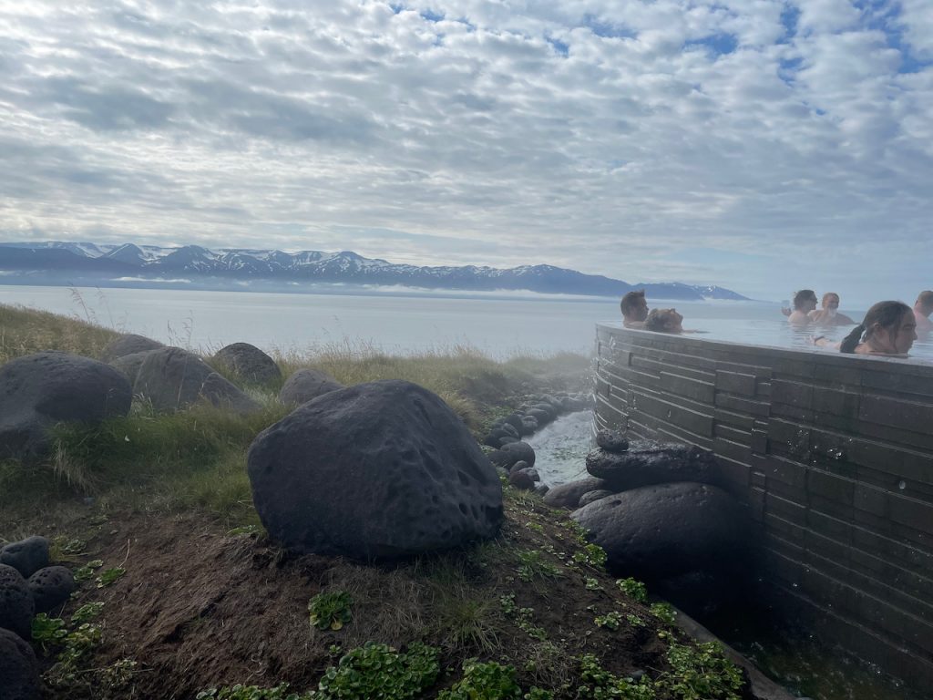 But we were still going to go to Geo Sea, dang it! Over to Husavik with us. Geo Sea is a hot spring on a cliffside with an infinity pool that runs pretty close to the edge of the cliff. Sometimes, you can see whales. With my hot spring-driven brain, I have no idea HOW I missed this place last time we were up here. It wasn’t new.