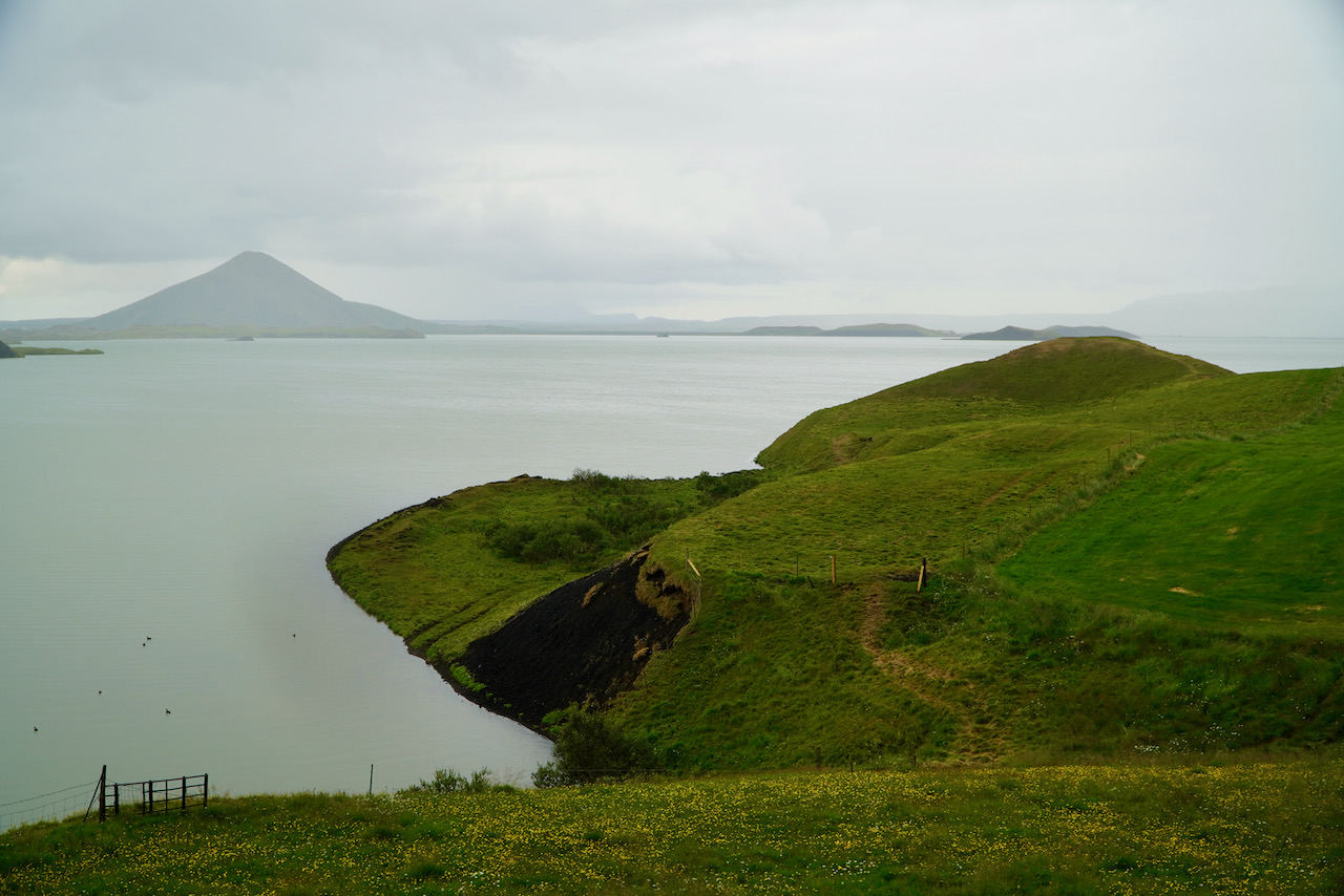The rain did NOT stay at bay for our afternoon hike near Myvatn though, where we walked around some of the volcanic cones at the southern end of the lake. It was relatively aggressive rain, but we stuck it out, and were rewarded with relative quiet and the company of ducks, swans, and loons on a small pond.