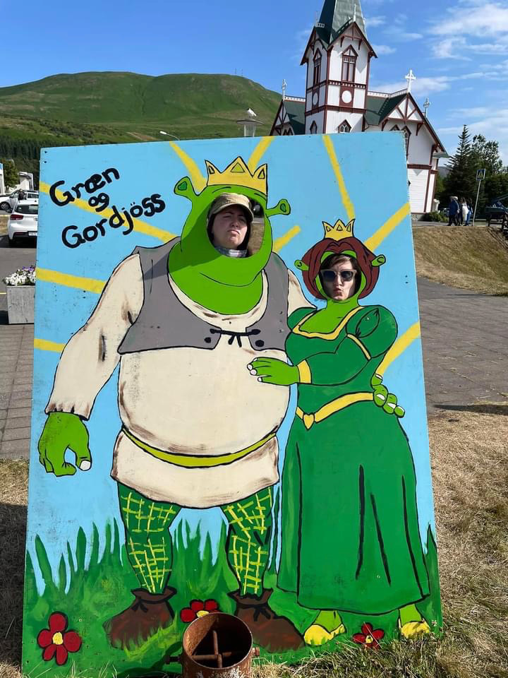 We wandered around ashore near the whale watching office and I found my very favorite “green and gorgeous” Shrek face board thing (What are these called?!) that I also found in 2017. I also resisted purchasing a very expensive sweater. Amazing.