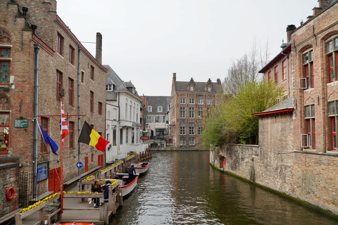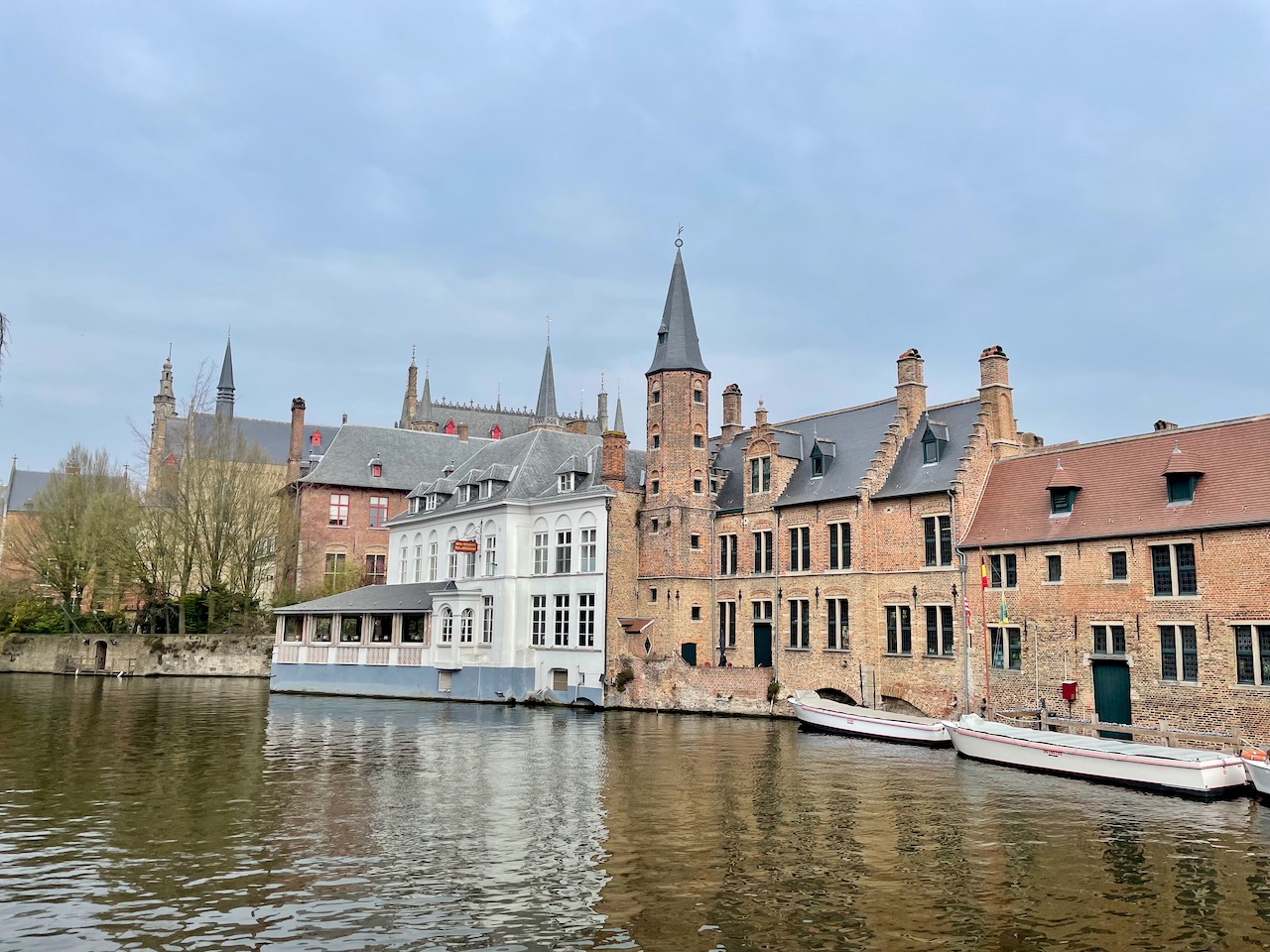 Rounding out our day, we took a canal tour around Bruges. We got here without any wrong turns! We went with a tour operator that had electric boats (the theme of the trip is also accidentally “no gas things except for the plane”). The boat was silent, and we glided through the canals, learning about the buildings and some of the history of the town.