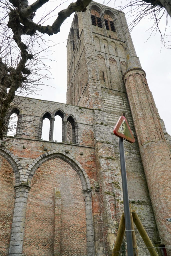 The church is another “Church of our Lady” – this one is super old and has a flat-topped tower. It was built in the 1200s and predates the little town of Damme itself. If you visit in tourist season, you can go in the church and climb the tower, but it doesn’t open until April 1st. Two days shy. Oh well – the tower kind of looks like it might fall over anyway! It’s probably very solid, despite the sign at the bottom that is telling you to very clearly beware falling rocks and things. Today there was a maintenance crew getting ready to rappel down the outside, presumably to do some repairs.