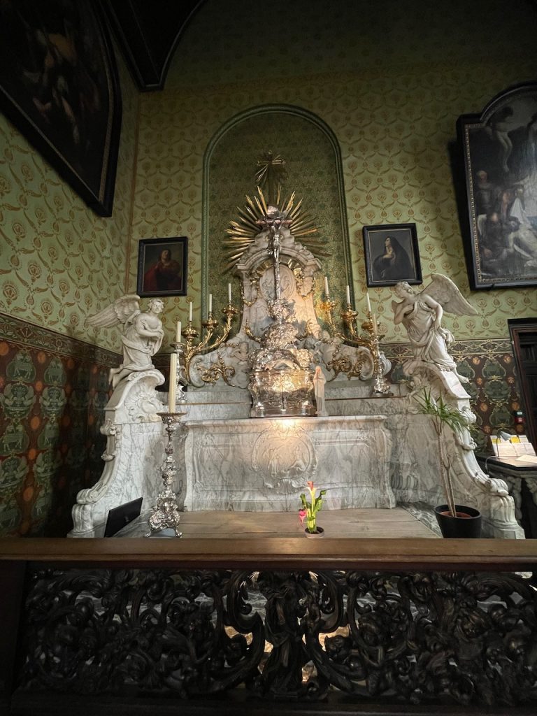 But now, we walk: up to the Markt square and then over to the Basilica of the Holy Blood. This church was built in the 1100s originally, and then gutted in the 1700s. It is home to….some holy blood (wow surprising) – supposedly Christ’s, given to a knight in the 1100s. It apparently miraculously turned to liquid every Friday for two centuries, before drying up for good in the 1300s.