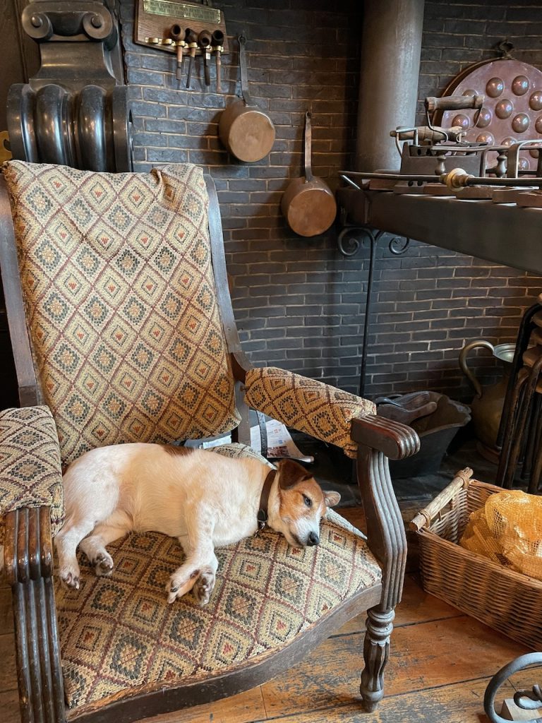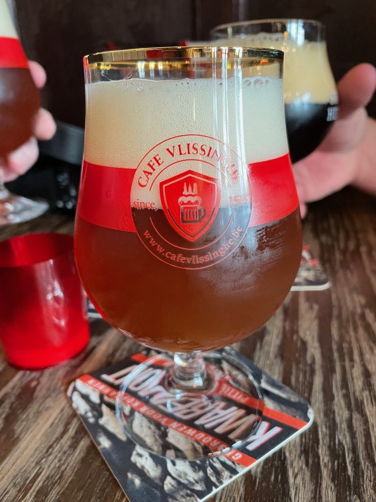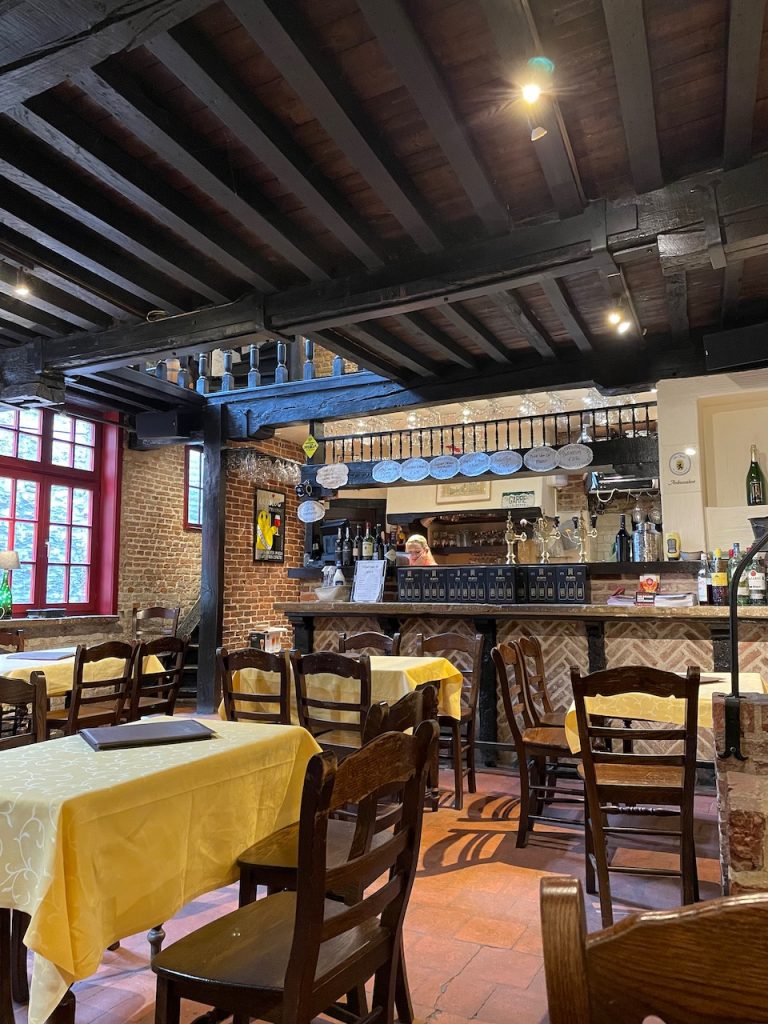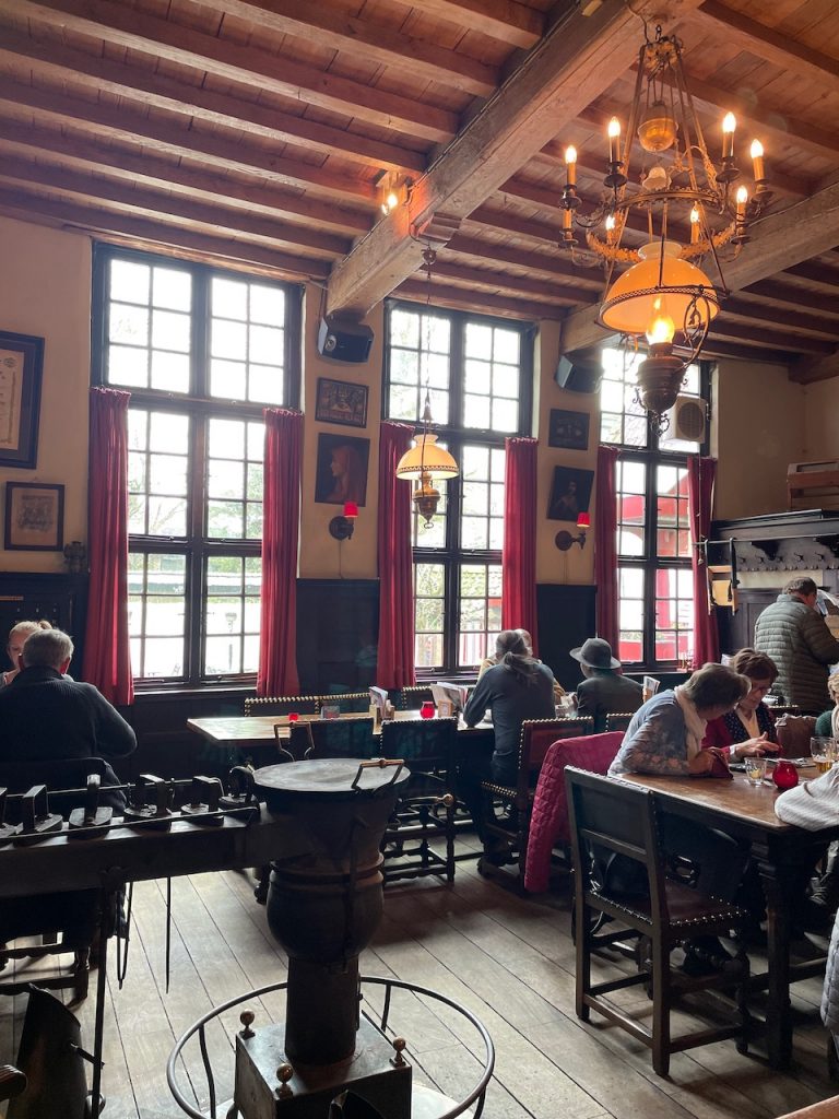 Our next stop on our winding path home was Vlissinghe, the oldest pub in Belgium. It opened in 1515 and has been going strong since then! Today it also had a pub pup in attendance, who realized after a while that my scritches were not food, so the pup curled up on a chair near the hearth to nap.