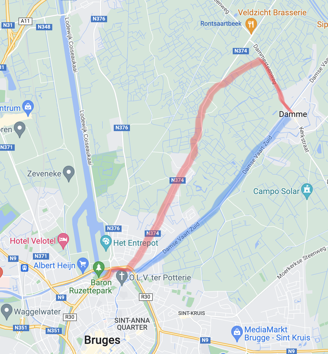 We had to cut across some single-lane country roads and did eventually end up in Damme – probably a 10-15 minute detour. It was still pretty.