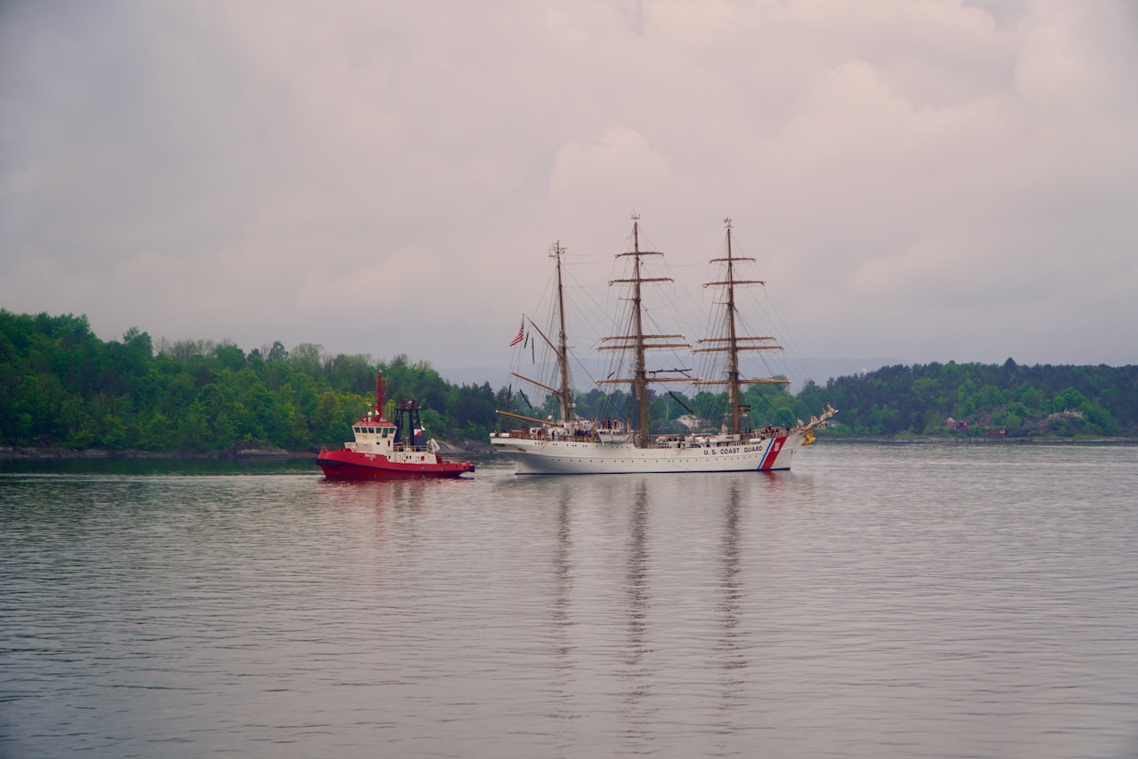 But first – we explore Oslo. I thought this was mildly unremarkable on Tuesday, but as we were pulling into port, from our room I spied a US Coast Guard ship being pulled by a tugboat (pictured below because Rhett didn’t believe me). I was moderately perplexed but figured “idk NATO???” and didn’t give it much more thought than that.