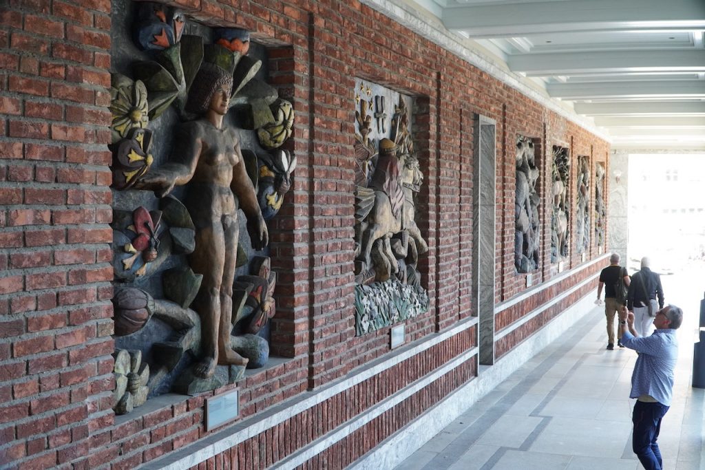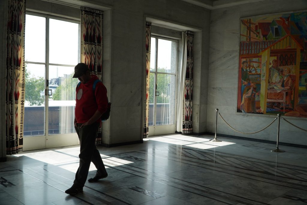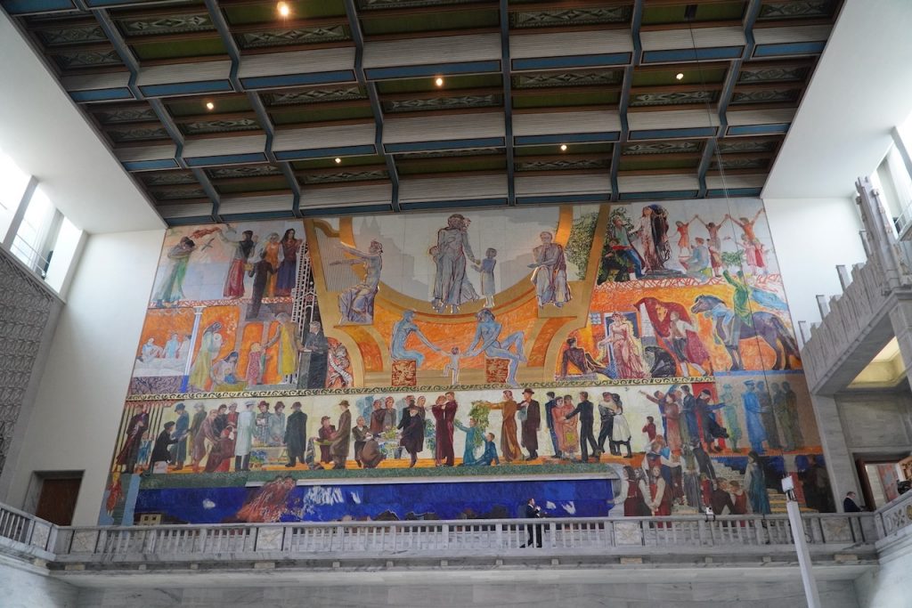 And then we revisited city hall – which we had been told was closed for a while due to an event. I checked on their website and it seems they’re open a few days with an odd schedule. We got in after all! But only the one floor was available to visit due to whatever event was going on (overhead people saying it was “some EU meeting” but I couldn’t figure it out, as all the English language news is about the warship). The murals inside are incredible. I wish we had been able to go upstairs.