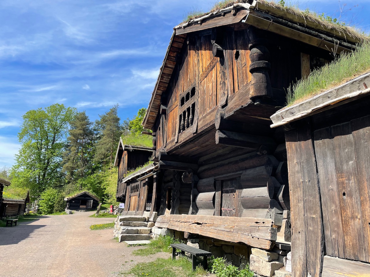 Norway is Just Trees, and importing stone was extremely expensive, so all of the old houses are made of wood and have really delightful sod roofs. The roof was changed every 30 years, so when the farm was inherited, the right of passage was replacing your sod roof.