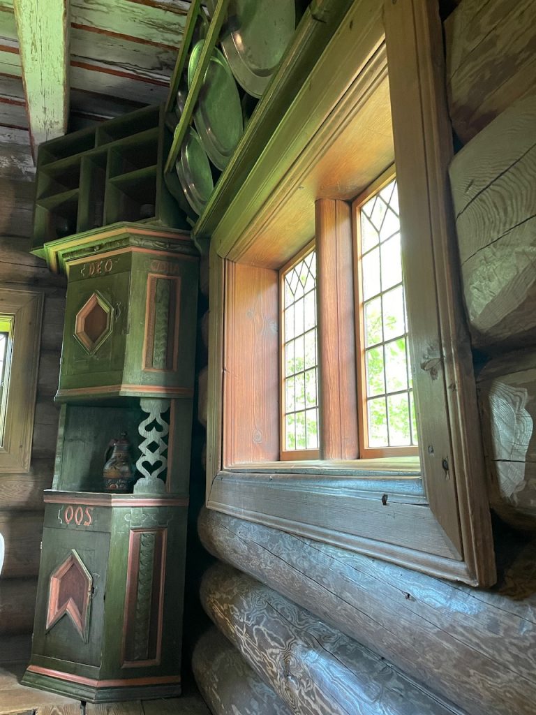 The folk museum has an old stave church, built in the 1200s, and moved to the folk museum in the late 1800s. Inside, our guide showed us the graffiti from the 1200s. Most of the graffiti was about prayers or faith, but one said vagina (as you do).