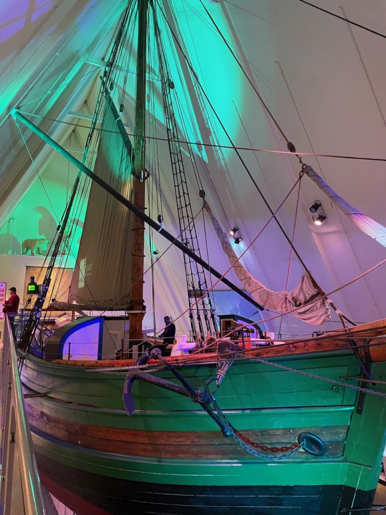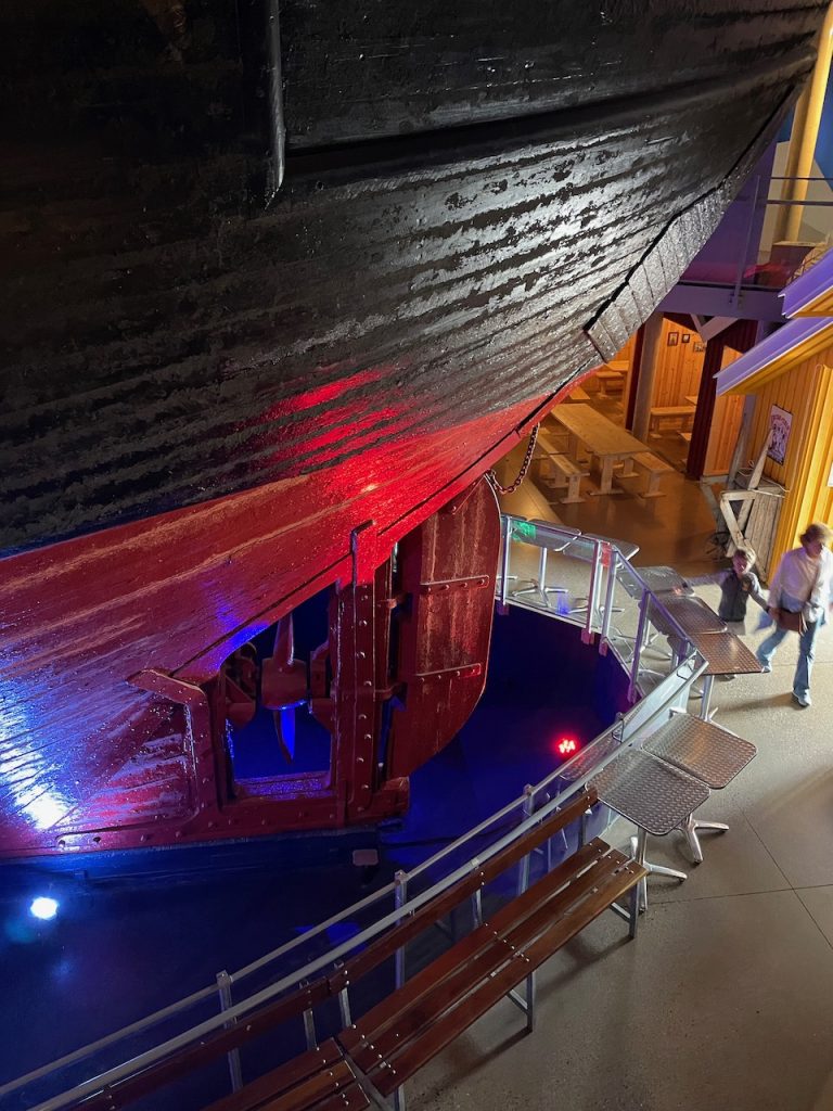 After lunch, we wandered to the Fram museum, dedicated to the exploration of the arctic and the antarctic and the search for the northwest passage. The ships Fram and Gjøa are both preserved inside the museum, restored and held up for tourists to crawl all over them.
