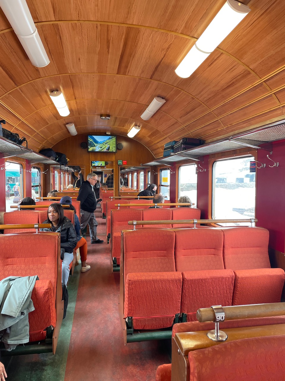 At Myrdal, you switch and take the Flamsbana to the tiny tourist trap town of Flam. Before the pandemic, you could not book this online (according to several sources I found from 2018 and 2019). Now – I could! The train ride is barely an hour and very scenic. The rail line was built originally in the 1930s to service goods to the town of Flam, and now it’s a tourist train. I’m game, because it’s super pretty, and also half empty this time of year.